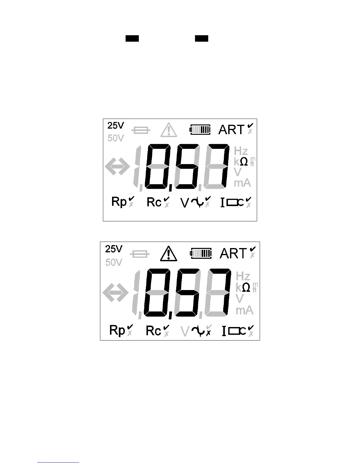 The instrument will display the warning triangle and an excessive noise voltage indicator if the ground