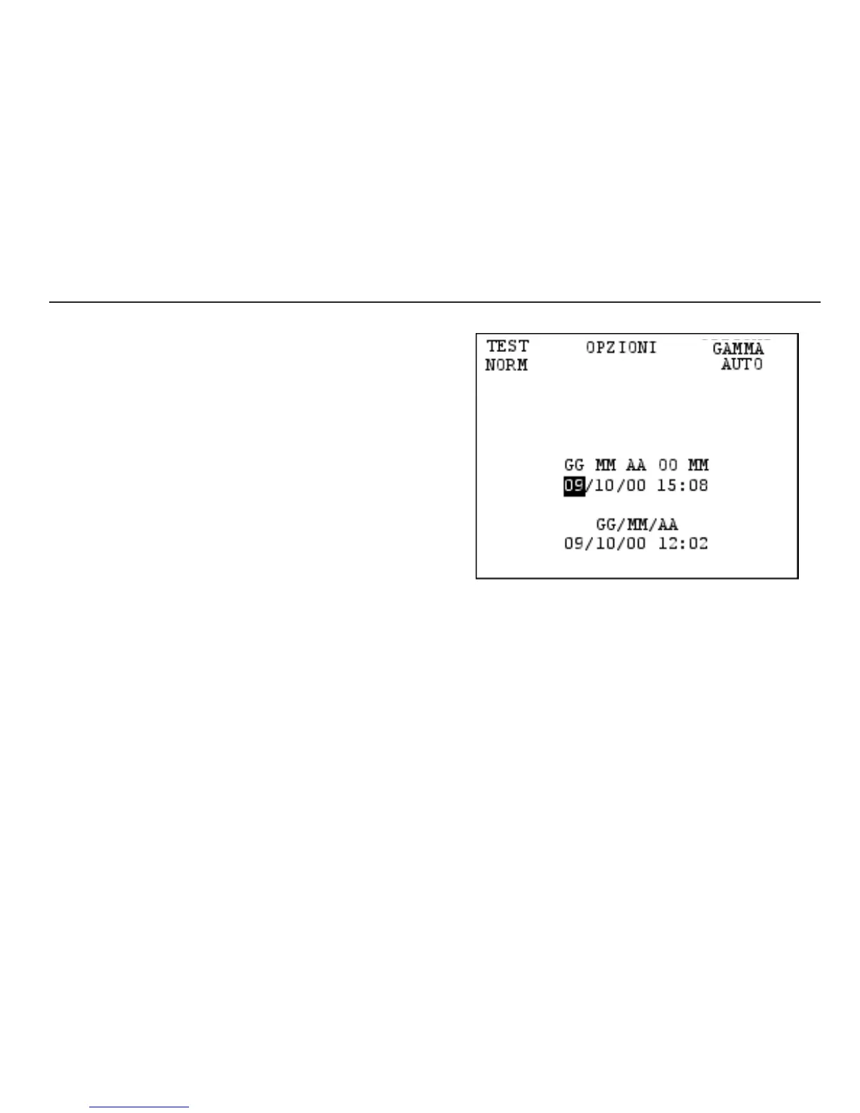 Il GG/MM/AA inferiore mostra il formato corrente della data. Premere