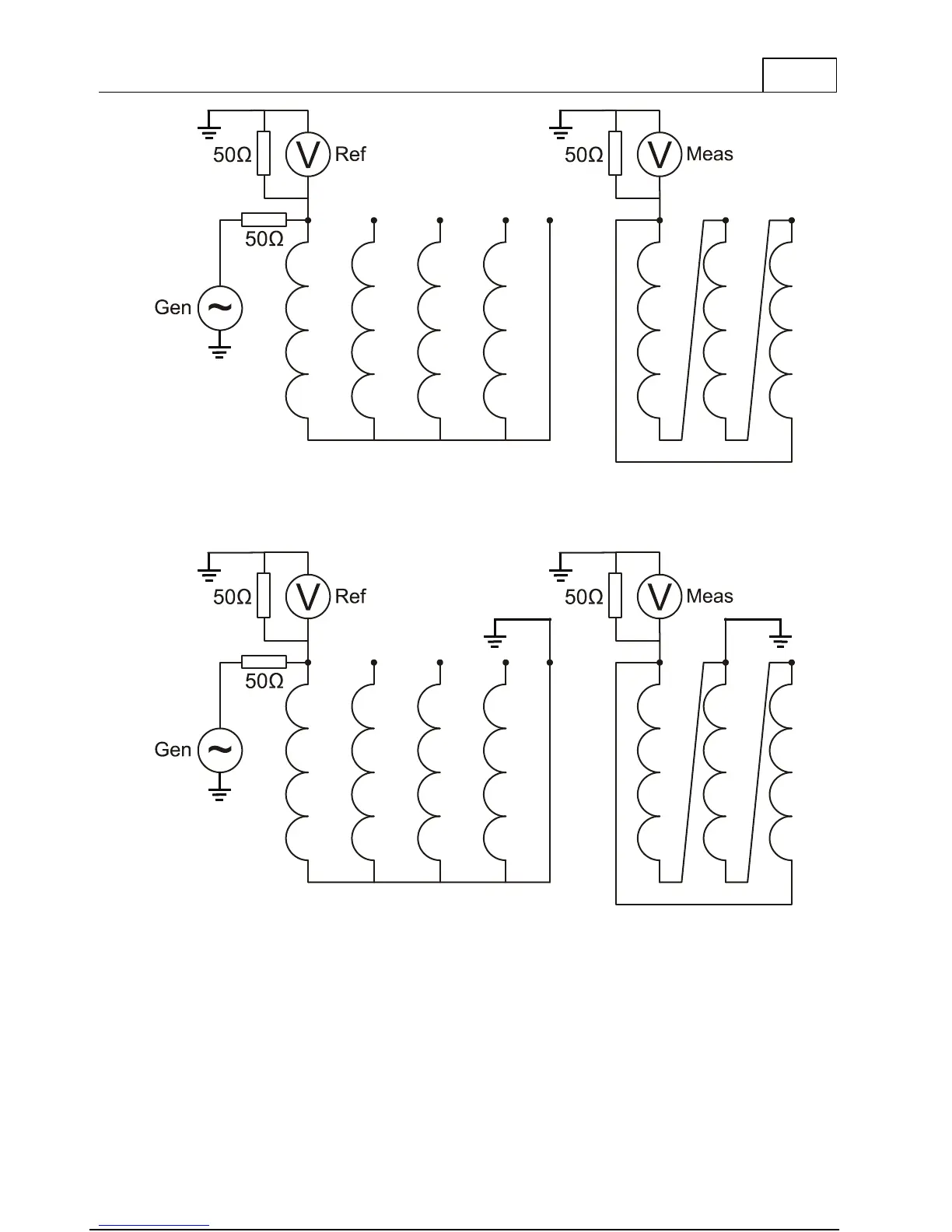 turns ratio (slightly affected by the 50 Ohm load at the “Meas”-side.)