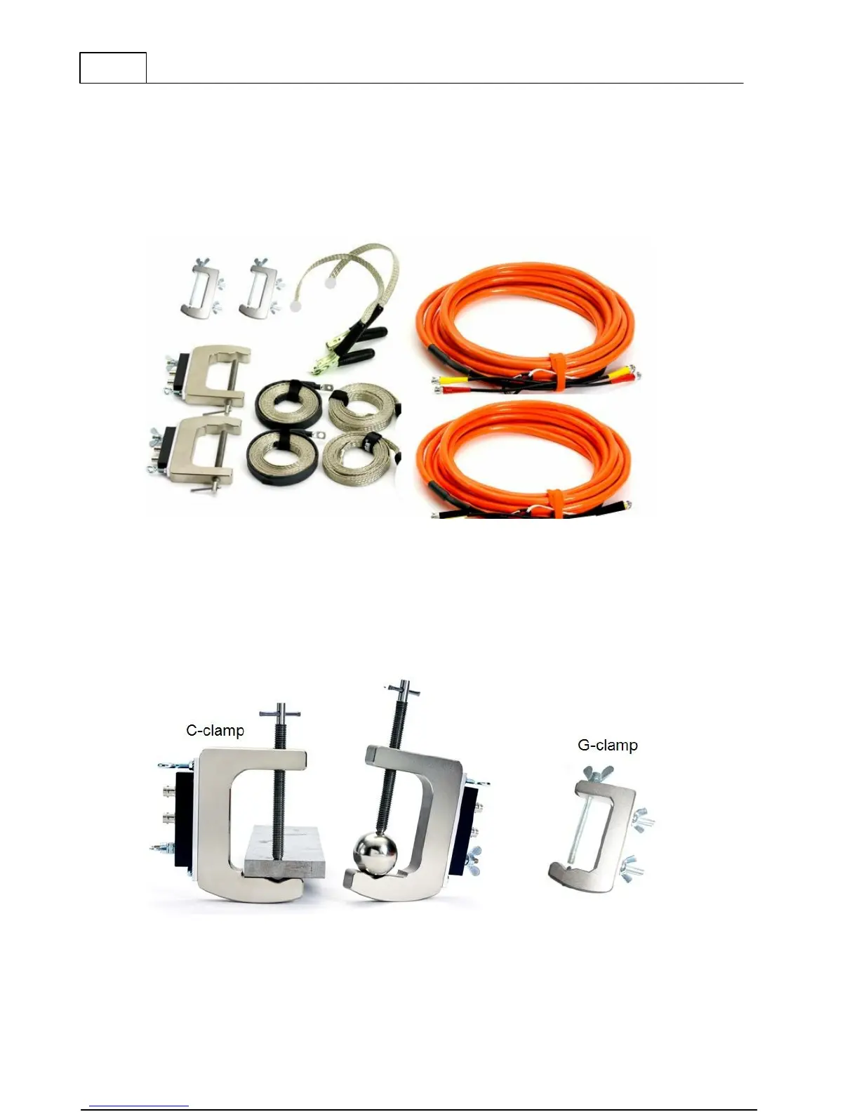 ground, cable strain relief) are included in one clamp. The smaller G-clamp is used to connect