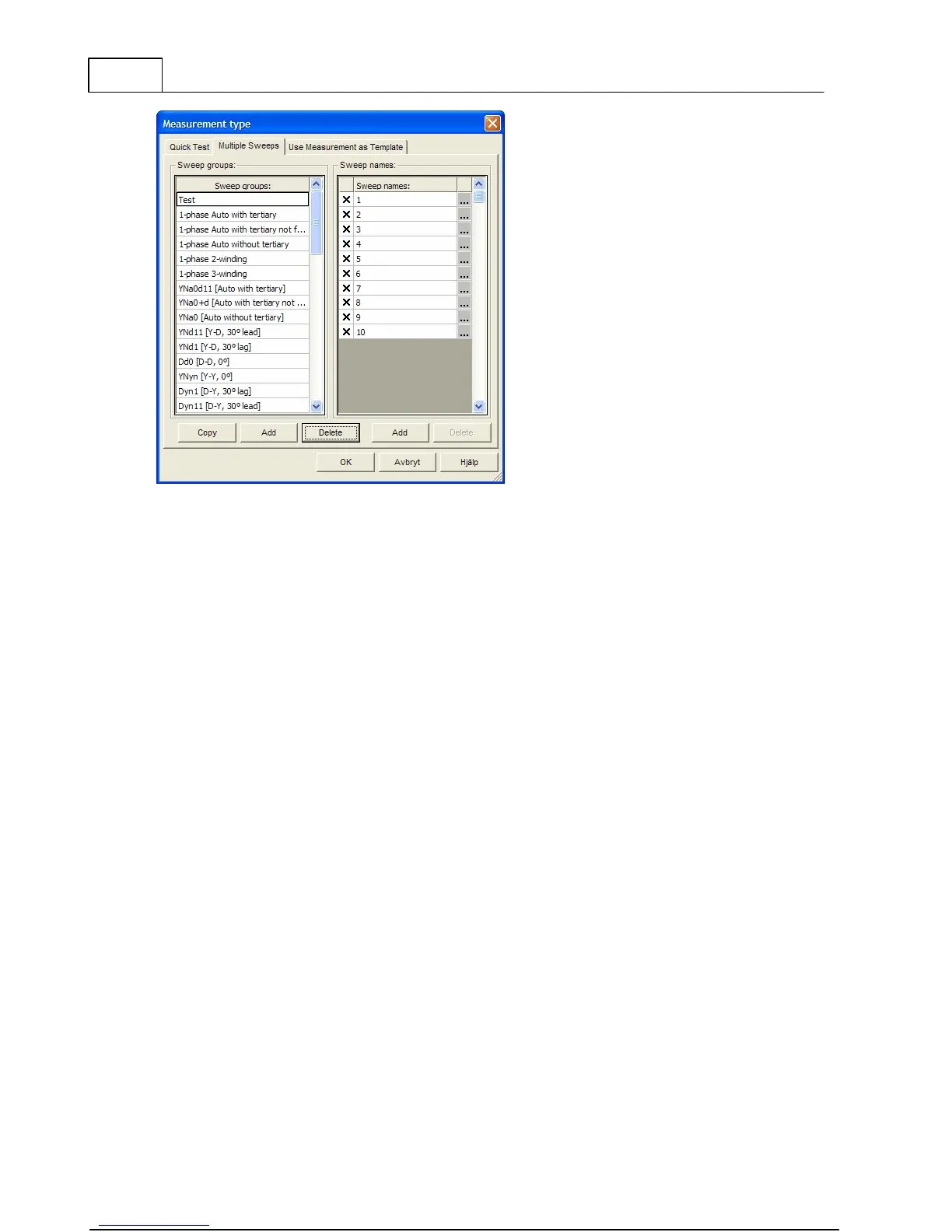 want to include and Press "OK". The sweep names and measurement settings used in the