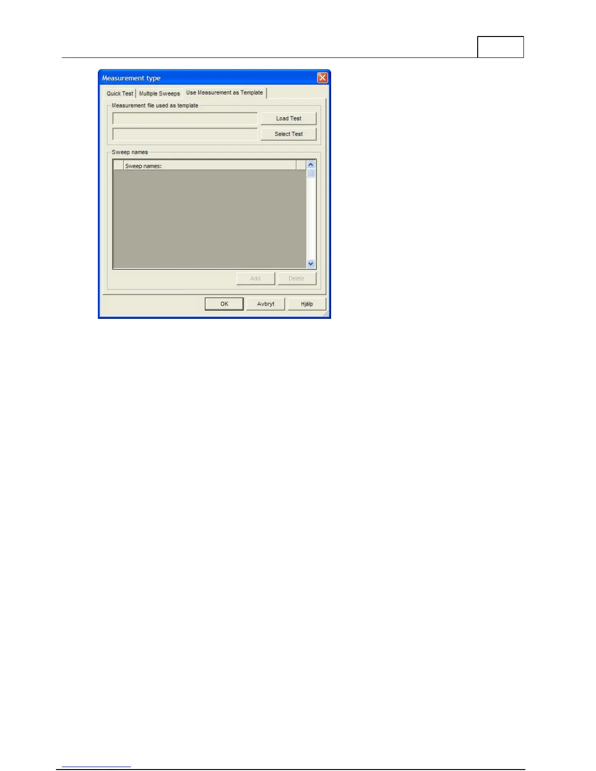 If "Measurement type" "Use Measurement as Template" is selected, the data from the selected