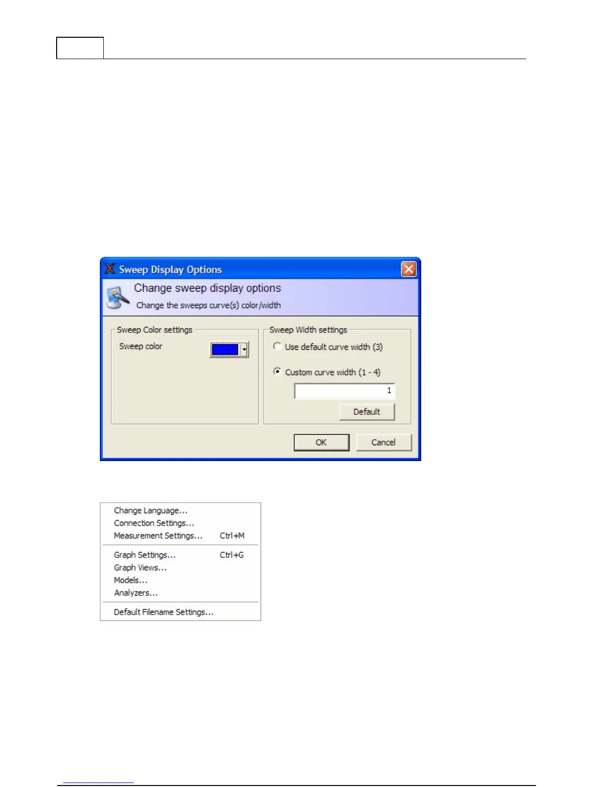 This dialog allows you to change the color and line width of the selected sweep curve and