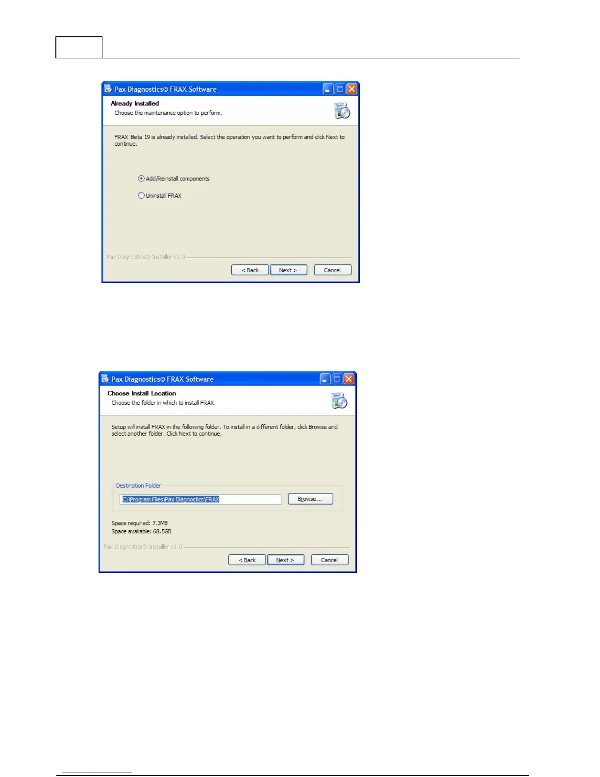 Select the location to which the FRAX Software will be installed. Make sure you have enough