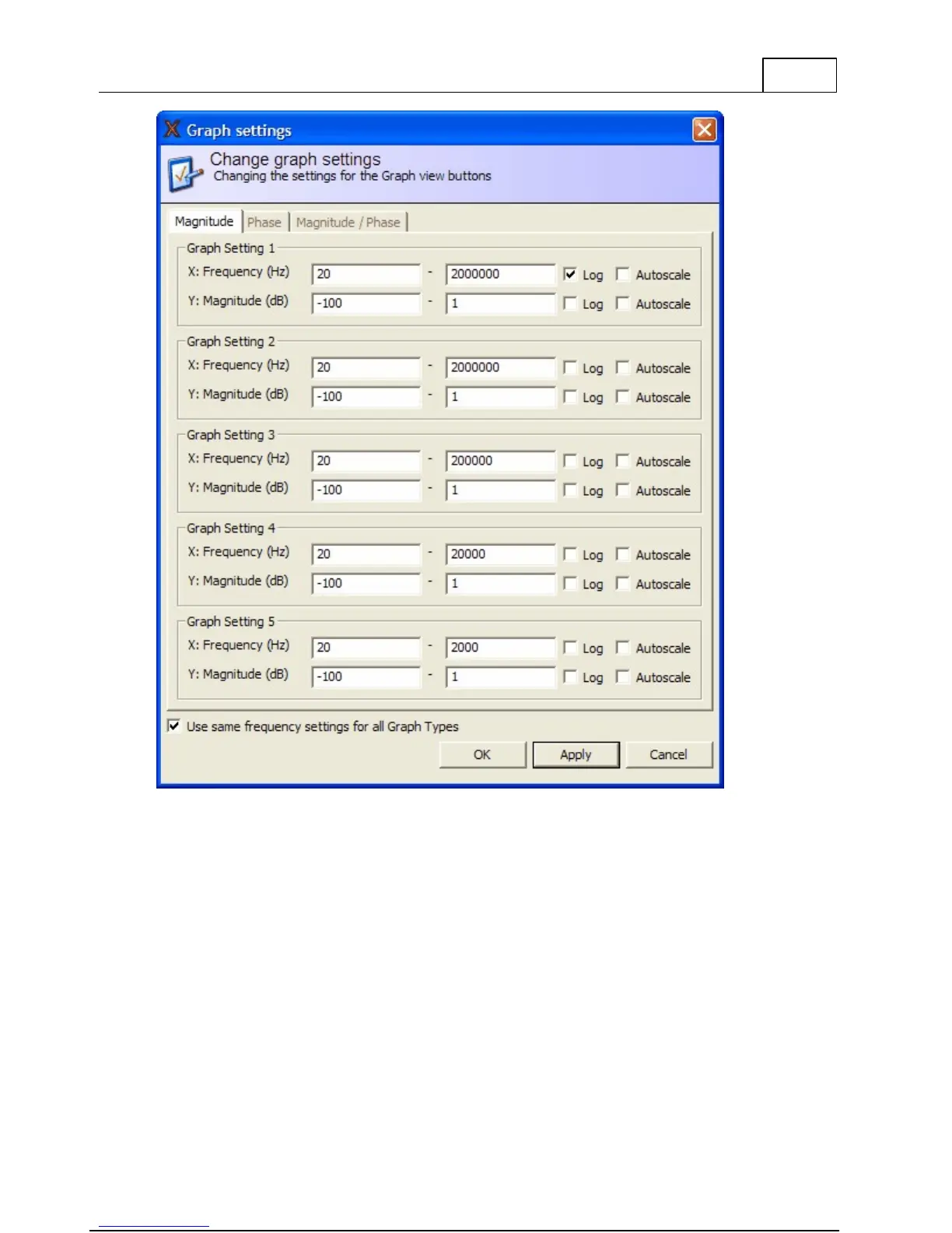 tab. The default selections include Magnitude, Phase, and Magnitude / Phase, as shown