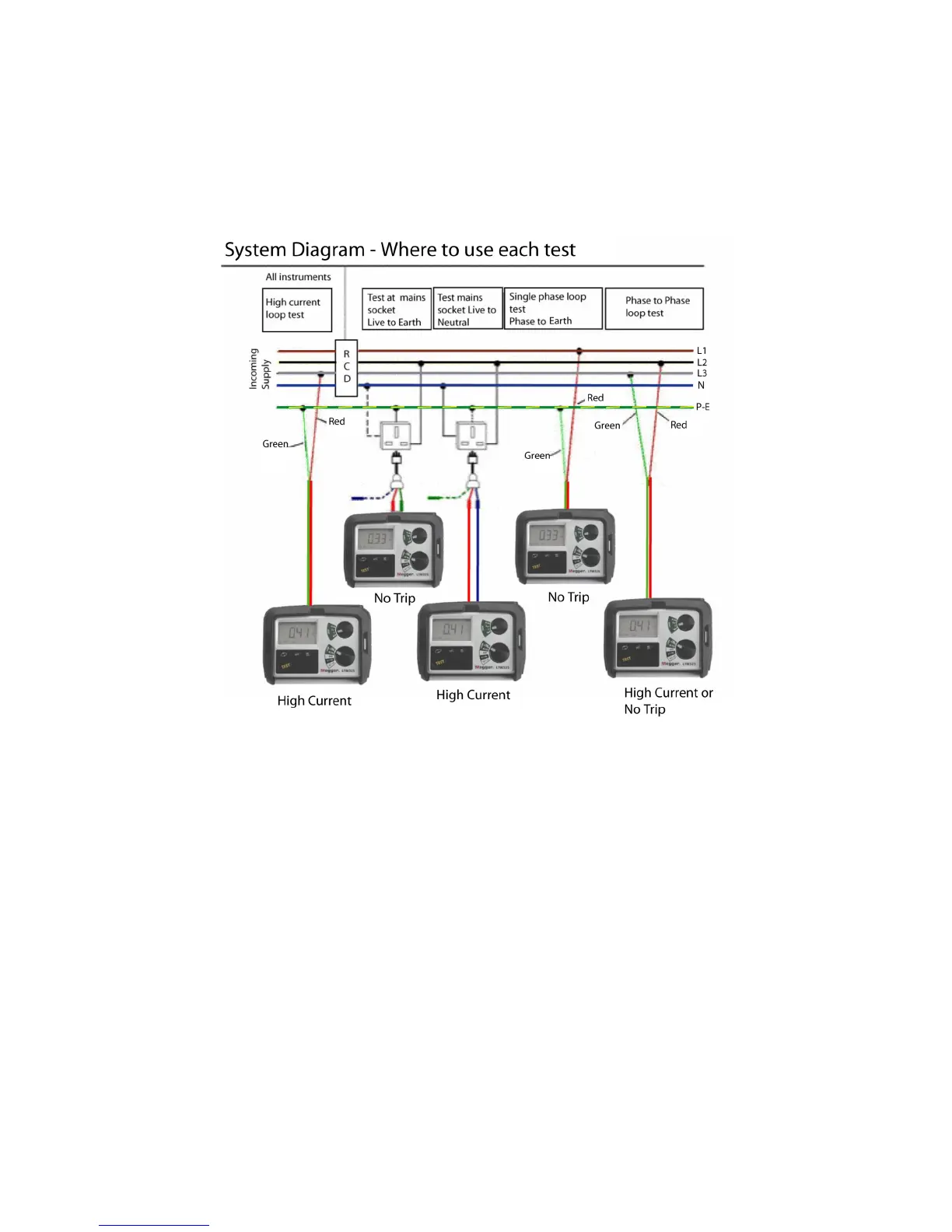 Megger LTW425 - Test Lead Connection Procedures; System Diagram for Test Lead Connections