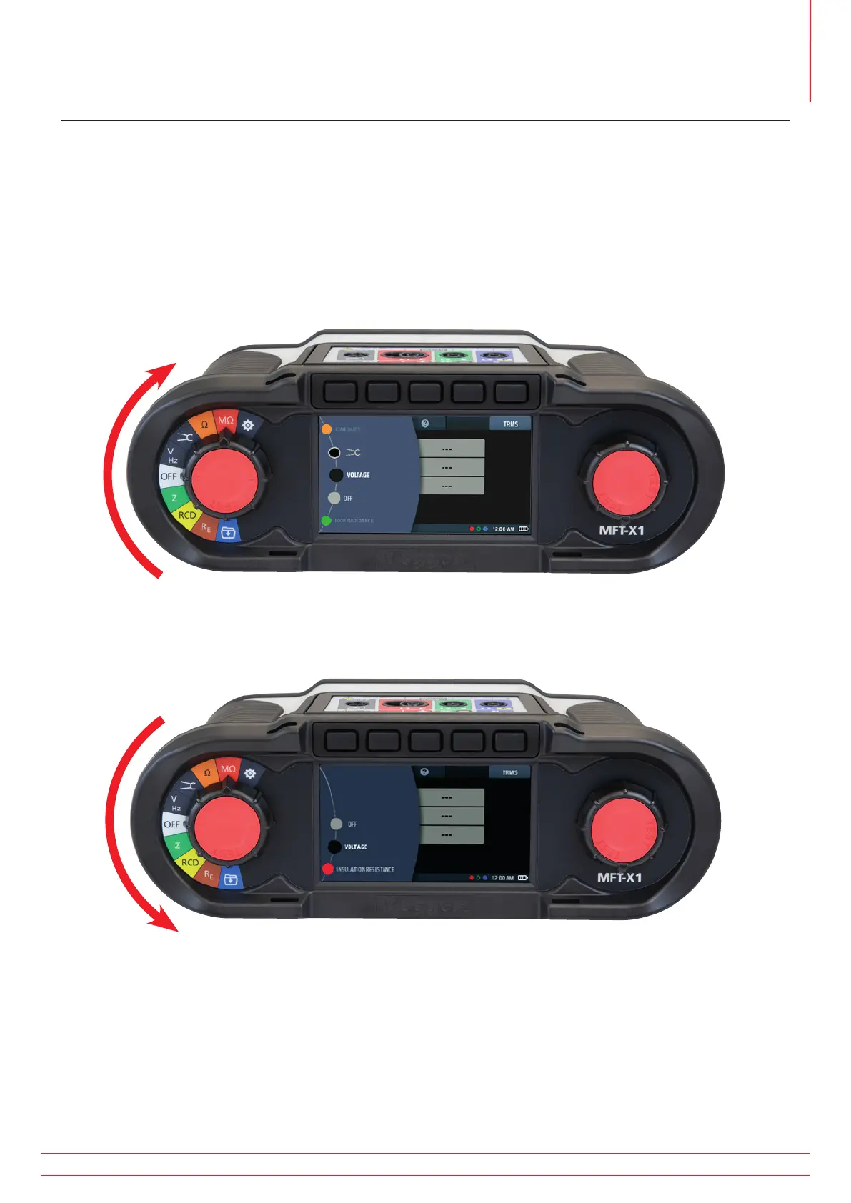 To turn the MFT-X1 on, turn the left-hand rotary knob away from the ‘OFF’ position. The instrument carries out
