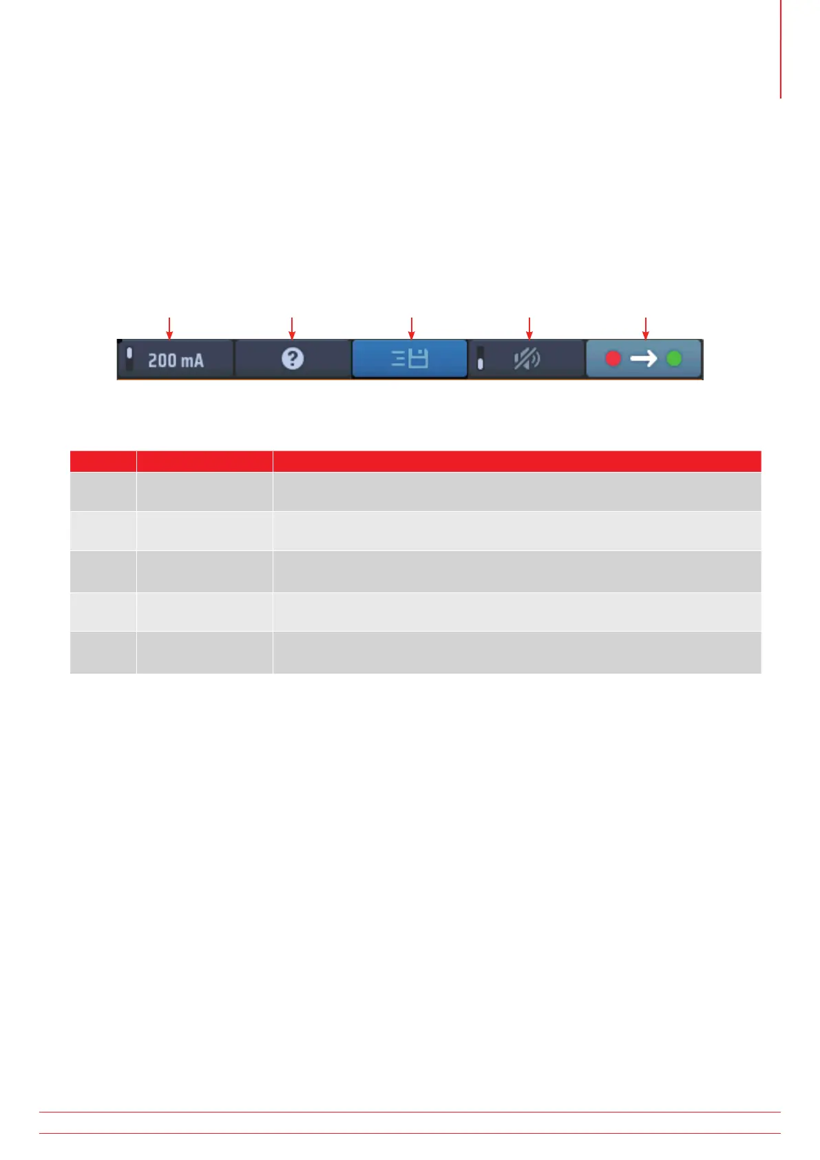 Press to select 200 mA test current, press again to return to 10 mA test current