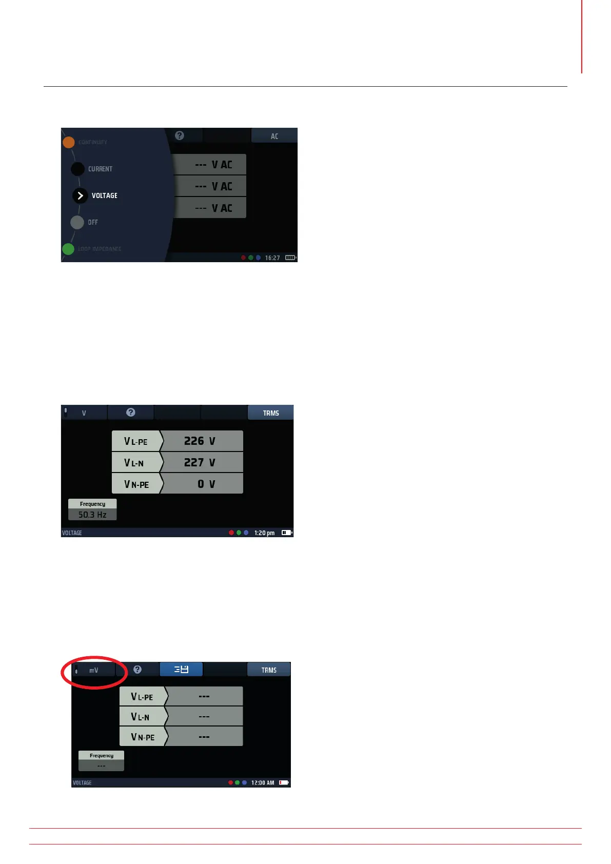 The MFT-X1 can measure single and three-phase AC voltages and DC voltages. Three measuring modes are available.