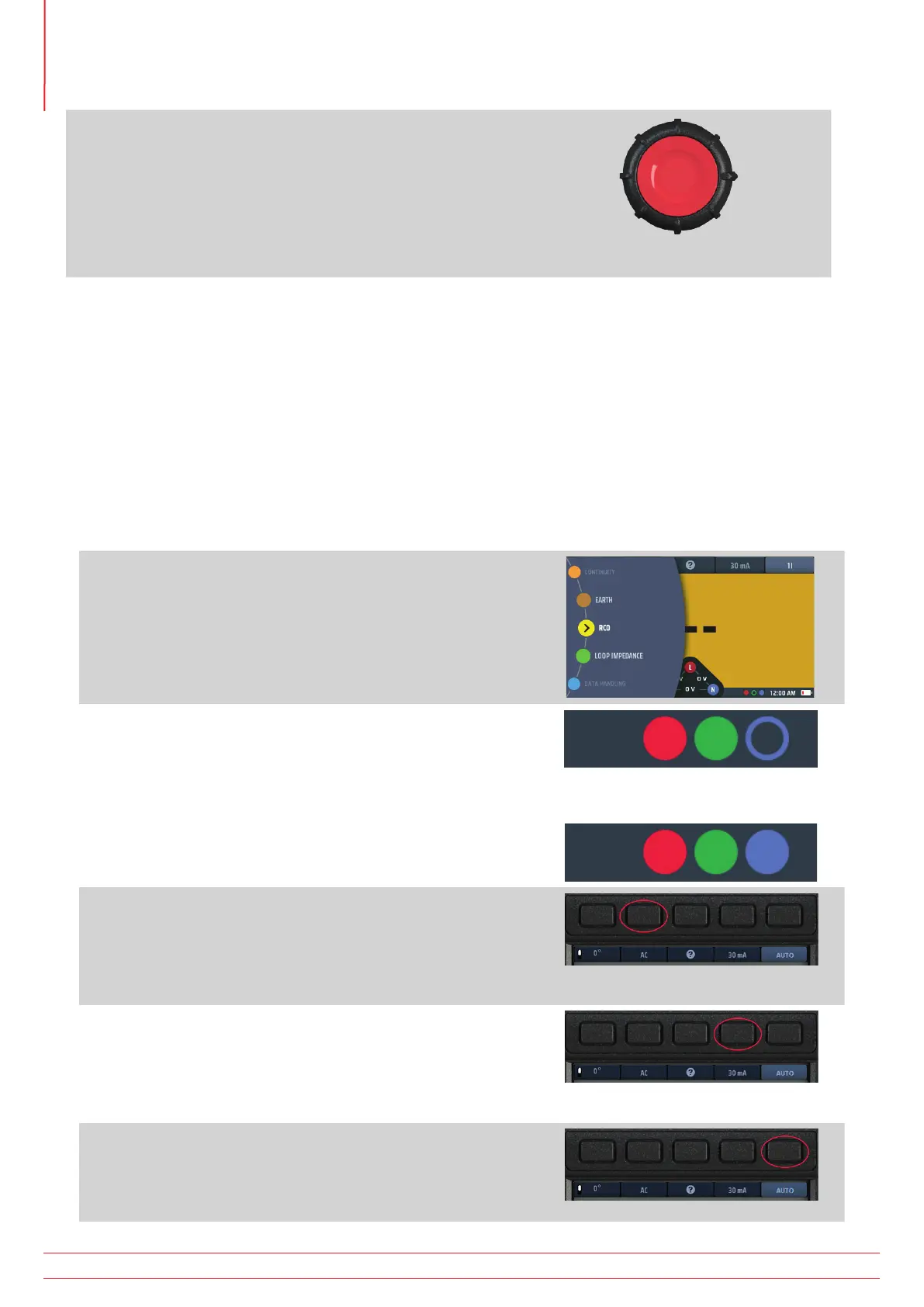 The instrument automatically carries out a touch-voltage test before starting any of the RCD tests or the automatic