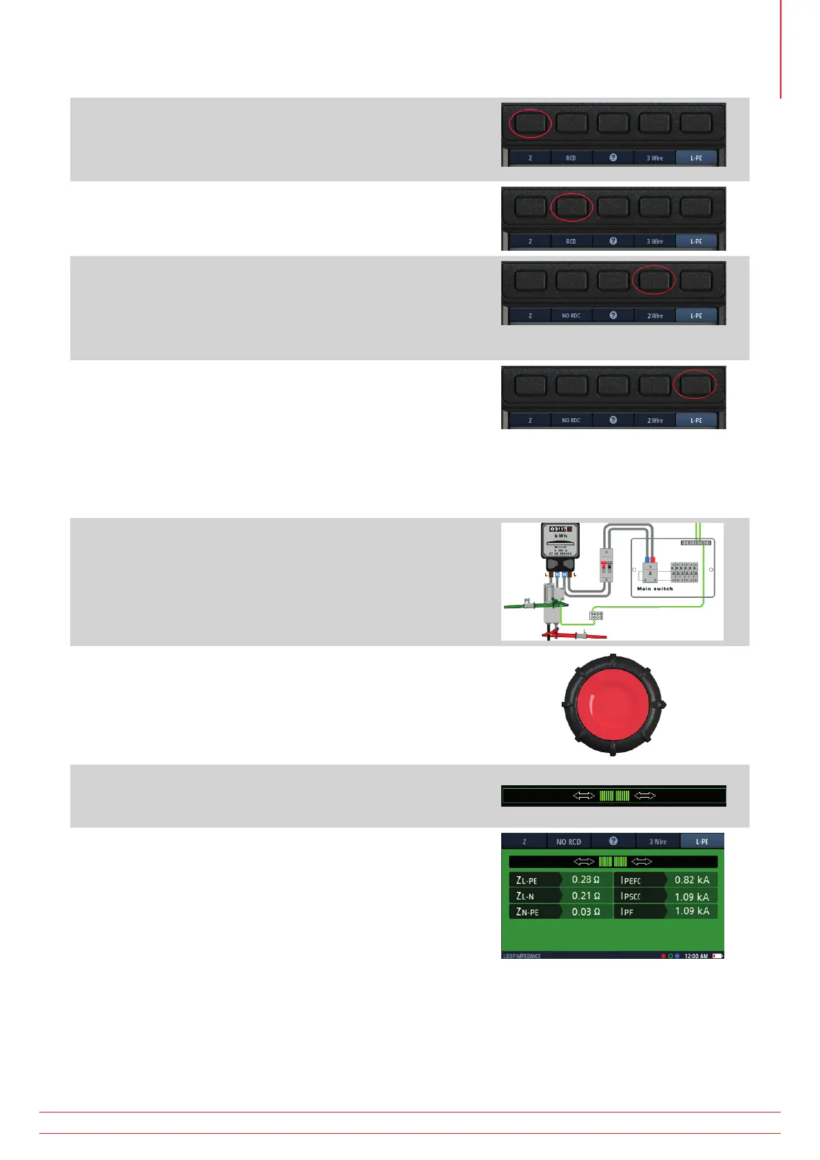The example here shows an L-PE test using 2 wire with No RCD