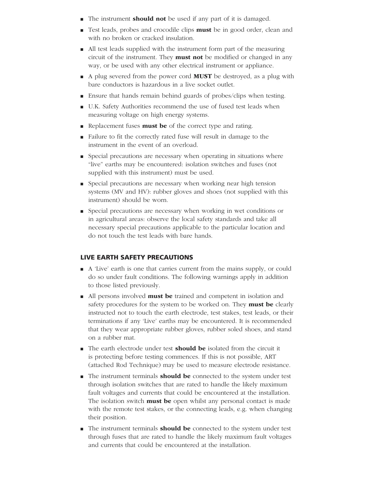 terminations if any ‘Live’ earths may be encountered. It is recommended