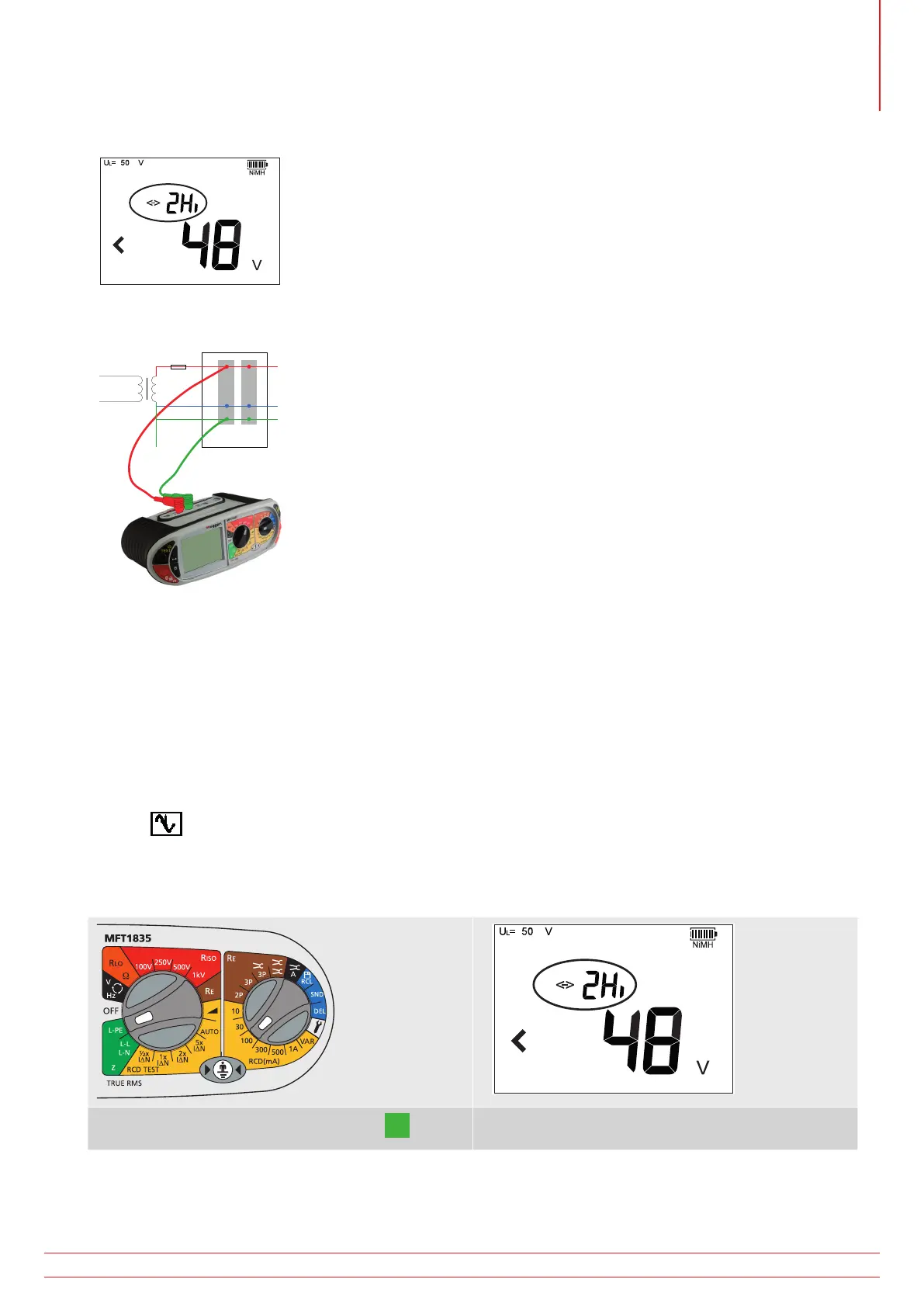 The 3rd test lead can be connected to Neutral (L3) but is not used in the ‘2Hi’ Phase-Earth measurement.