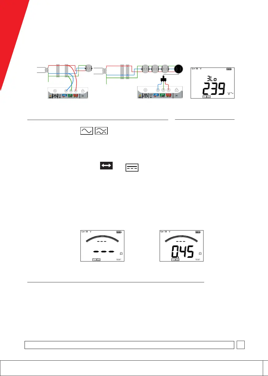 loopimpedans visas på skärmen, följt av loopimpedansens