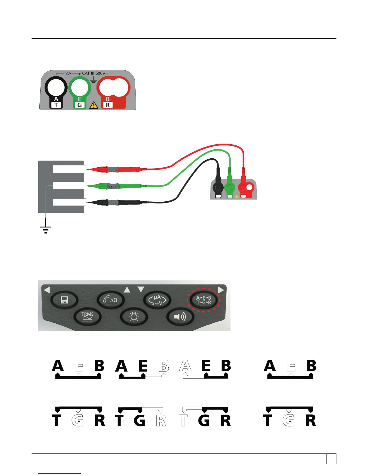 For example, in VOLTS mode, the voltages on the A-B pair, the A-E pair or the B-E pair can all be measured without having to