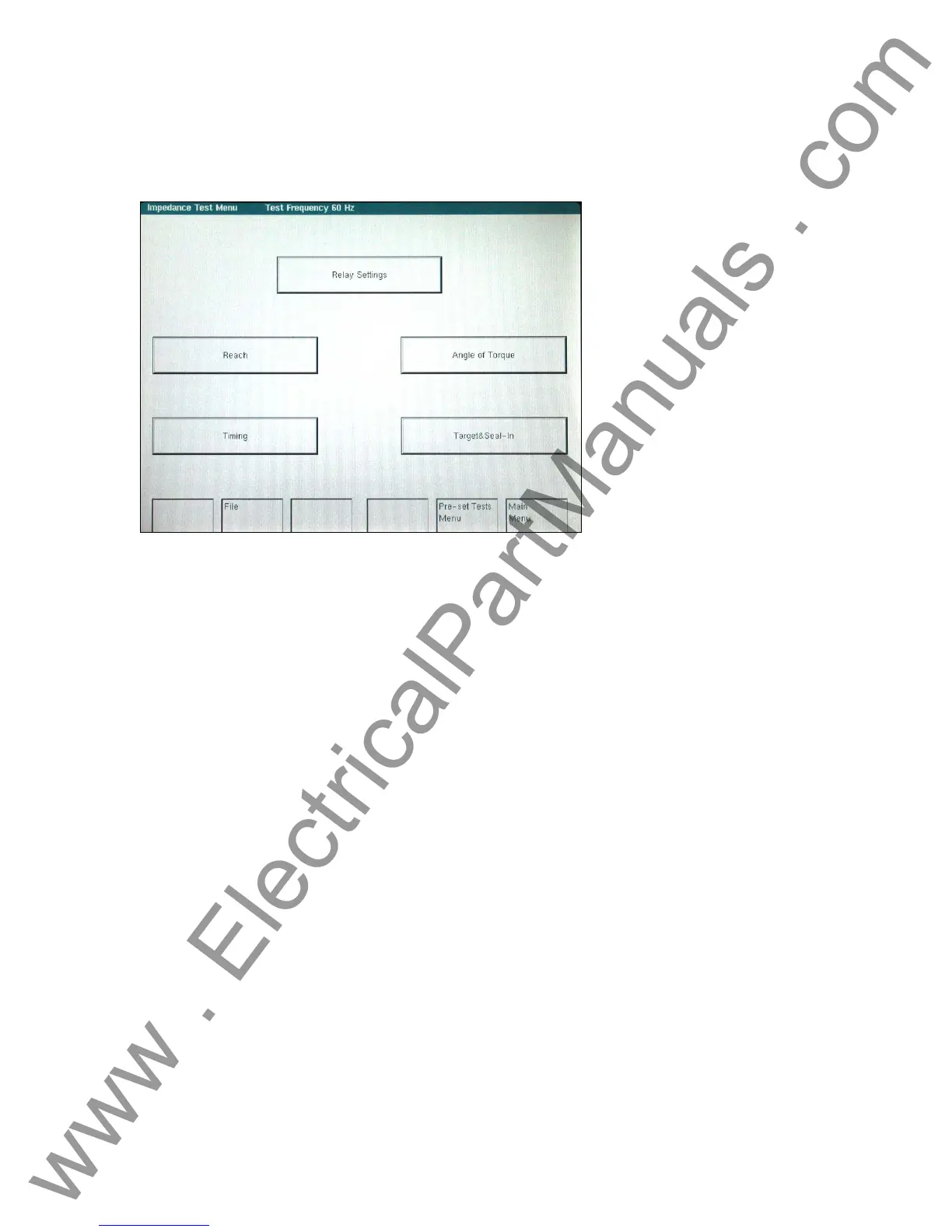 This menu permits the setting and testing of an Impedance or Distance relay. These tests should