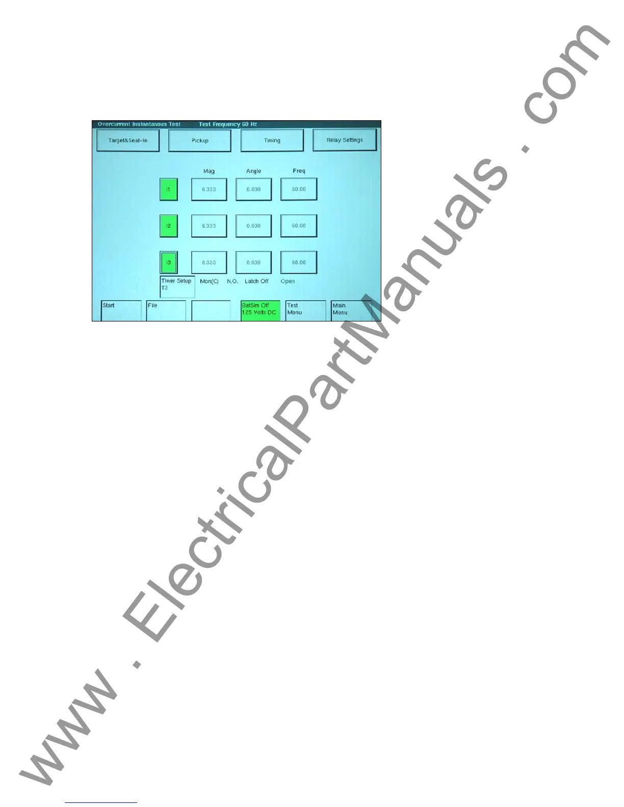 Figure 46 Overcurrent Relay Instantaneous Test Screen