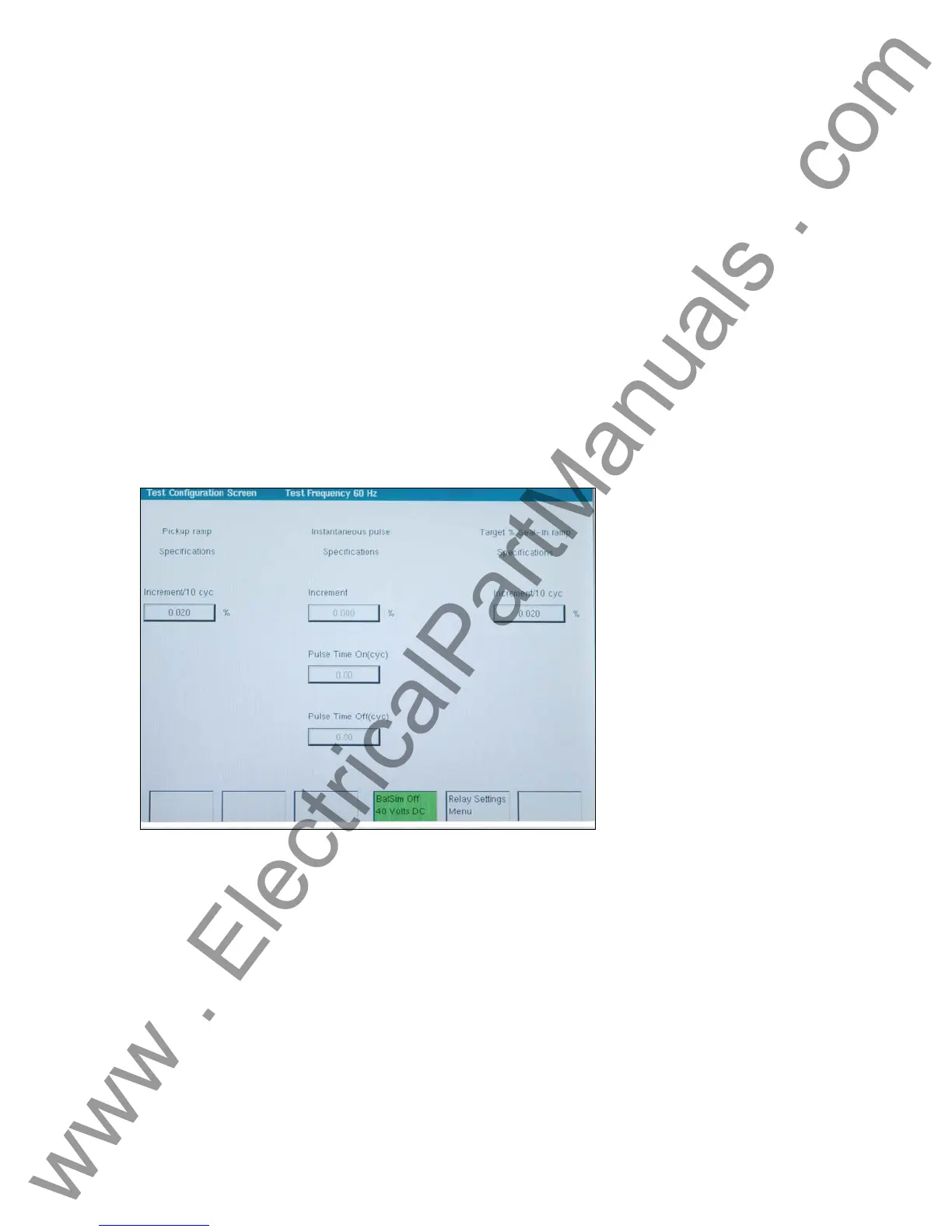 Increment % / 10 cycles For the Power relay the test voltage is fixed at