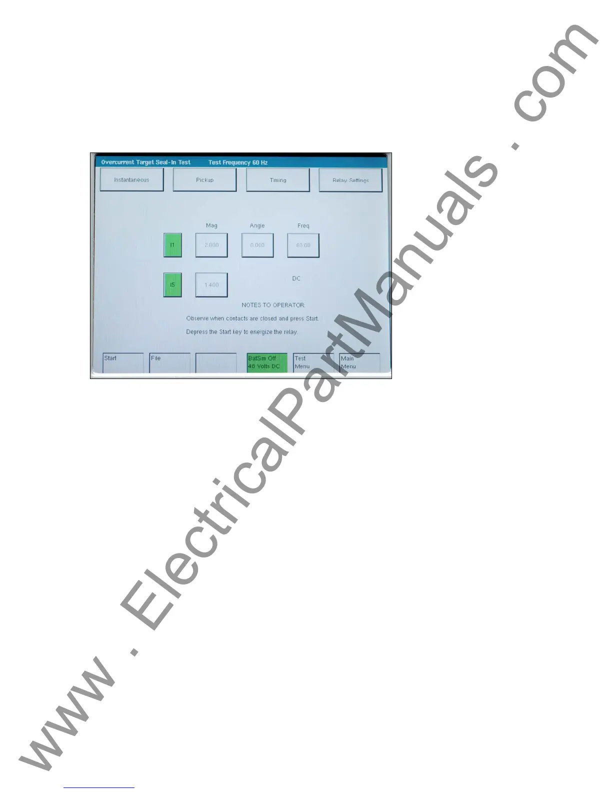Figure 45 Overcurrent Relay Seal-in Test Screen