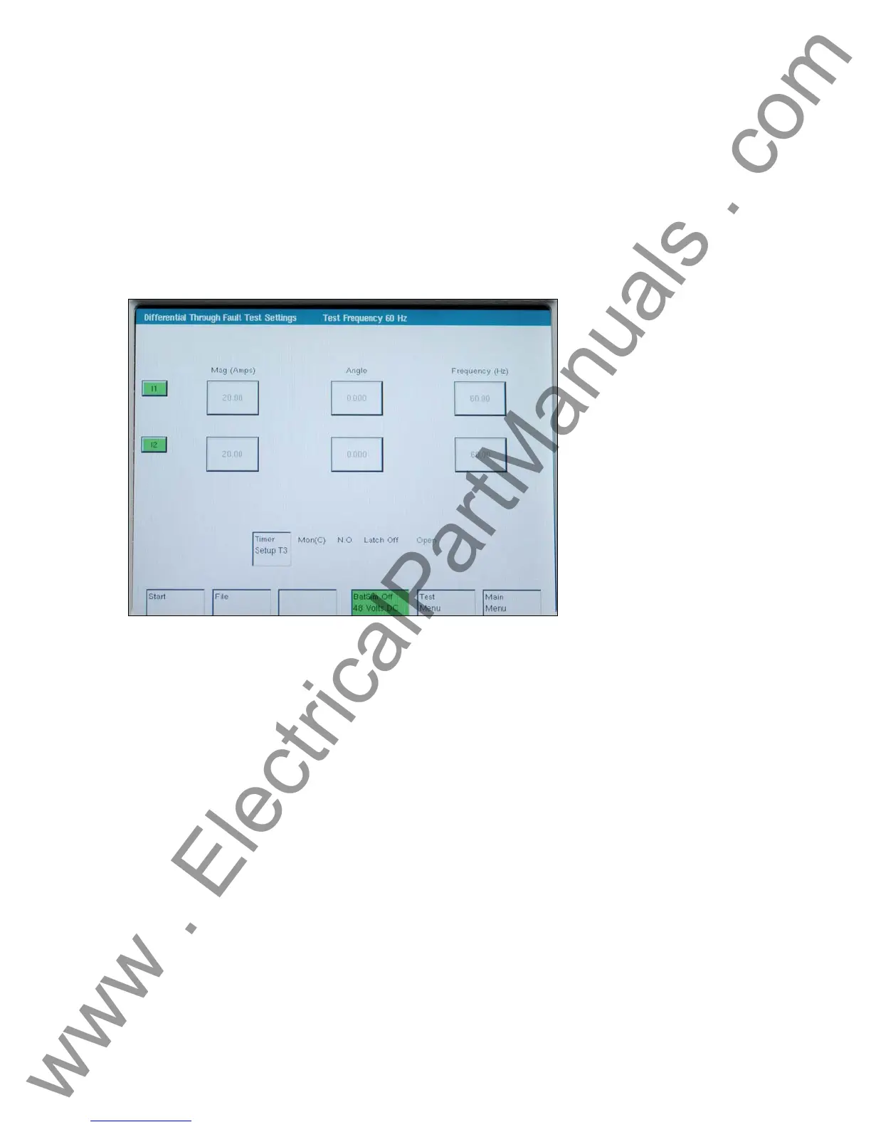 Figure 57 Through Fault Test Screen
