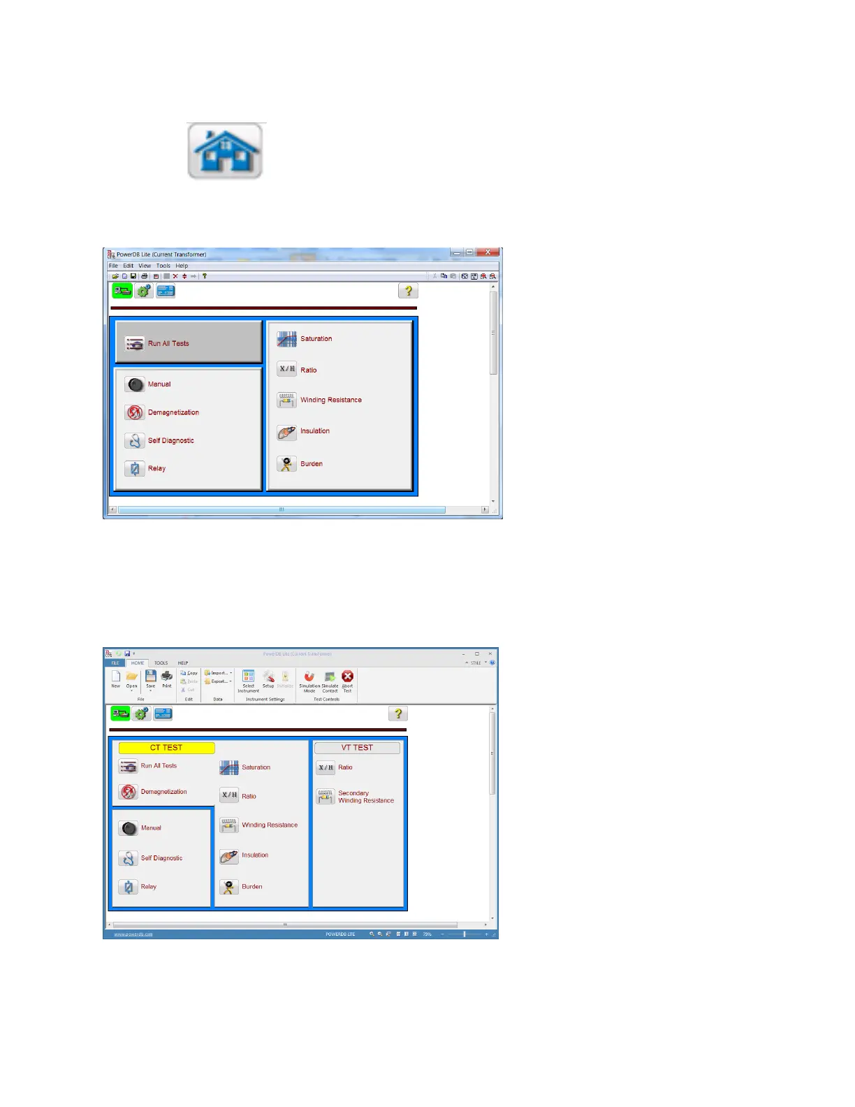 user can navigate to any test. If the MRCT was configured for CT testing only then the following screen