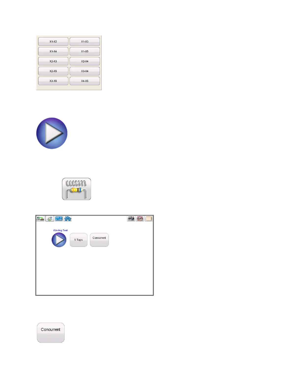 Selection of Winding Resistance Test button from the test configuration screen will bring