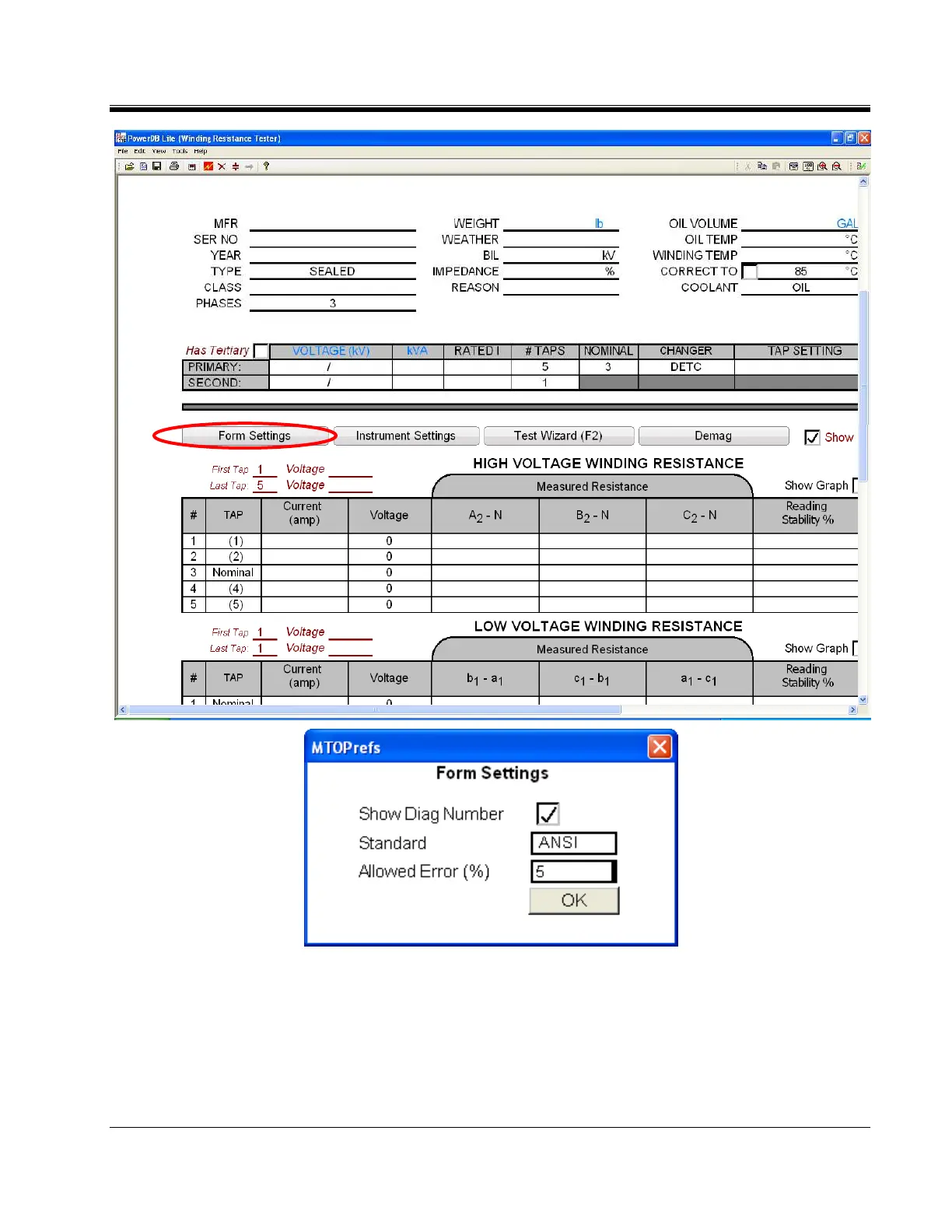 16. Instrument Settings Button – Setup the MTO for the testing methodology of the
