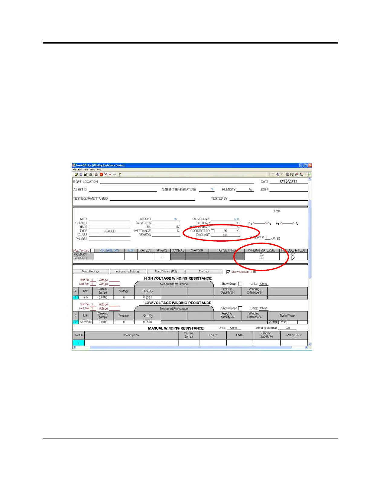 material, Winding temperature and corrected to temperature.