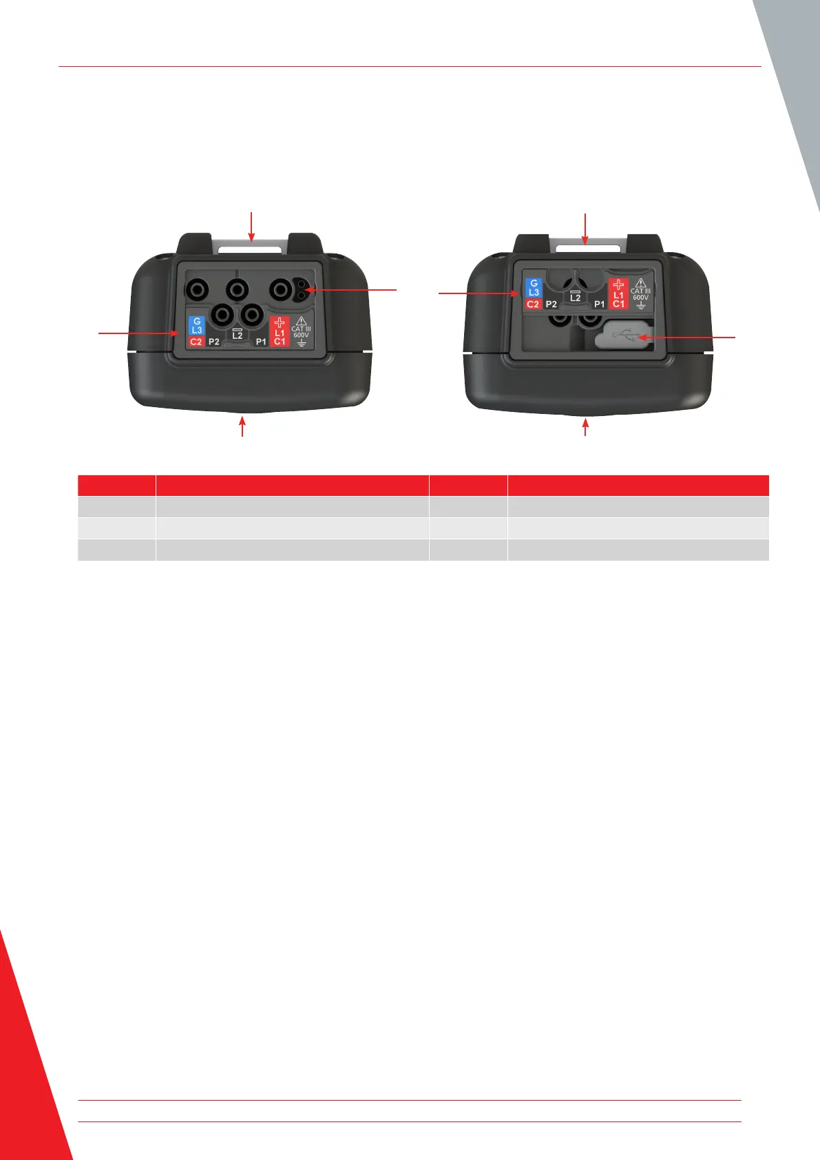 For charging or connection to any test leads the sliding cover must be in the forward position.