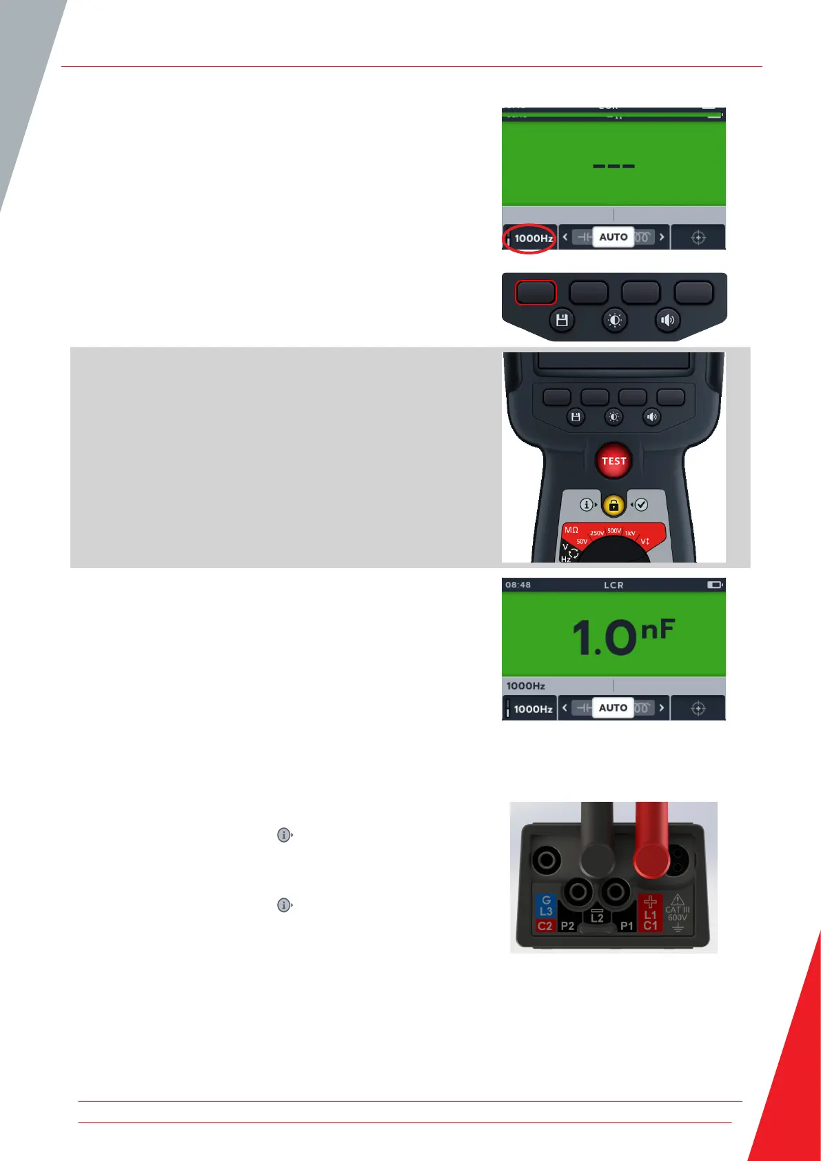 6. To start the test press the TEST button.