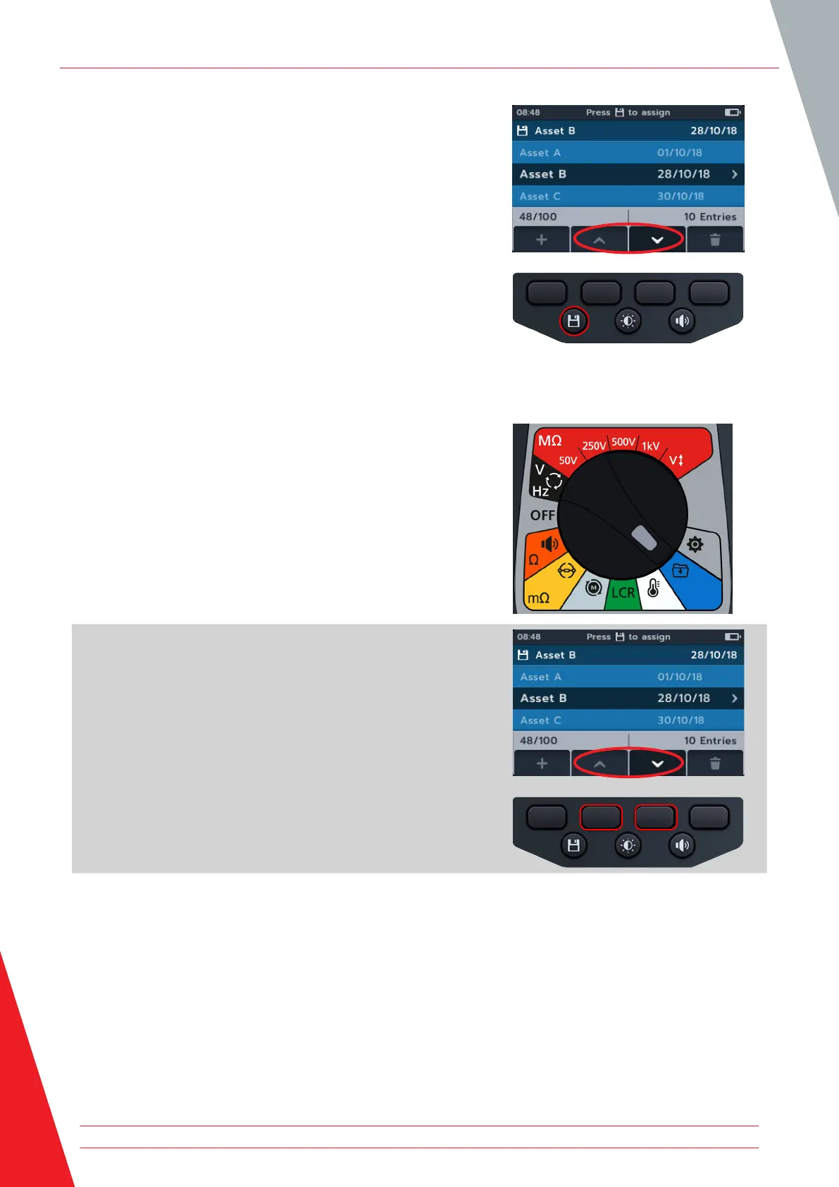 1. Turn rotary switch to select the data management position.
