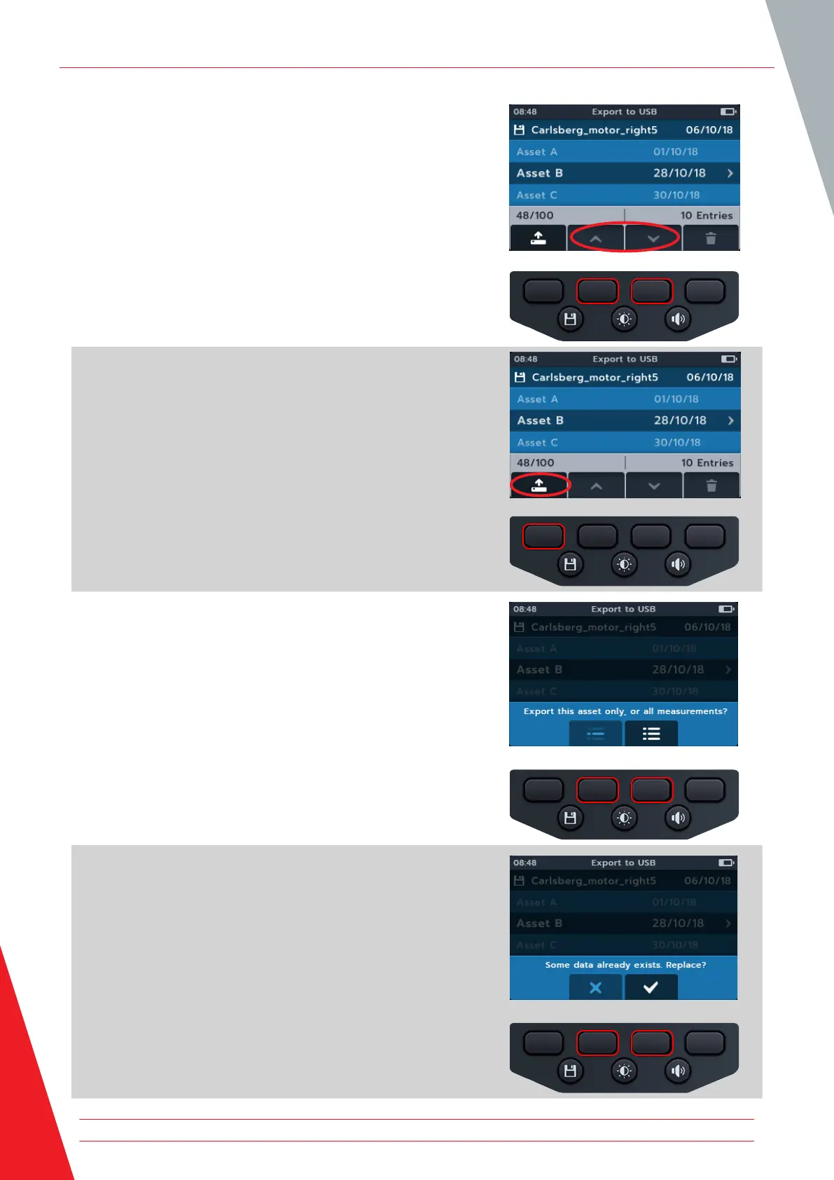 Press soft key 3 to upload all saved measurements