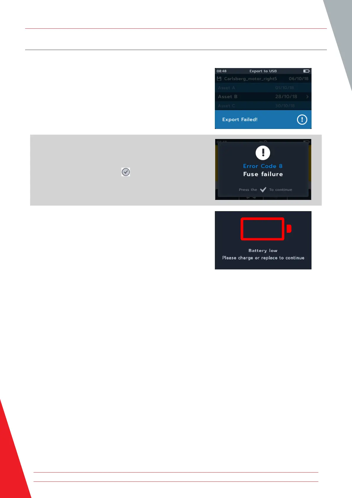 1. If the export fails, the MTR105 will notify the user. This