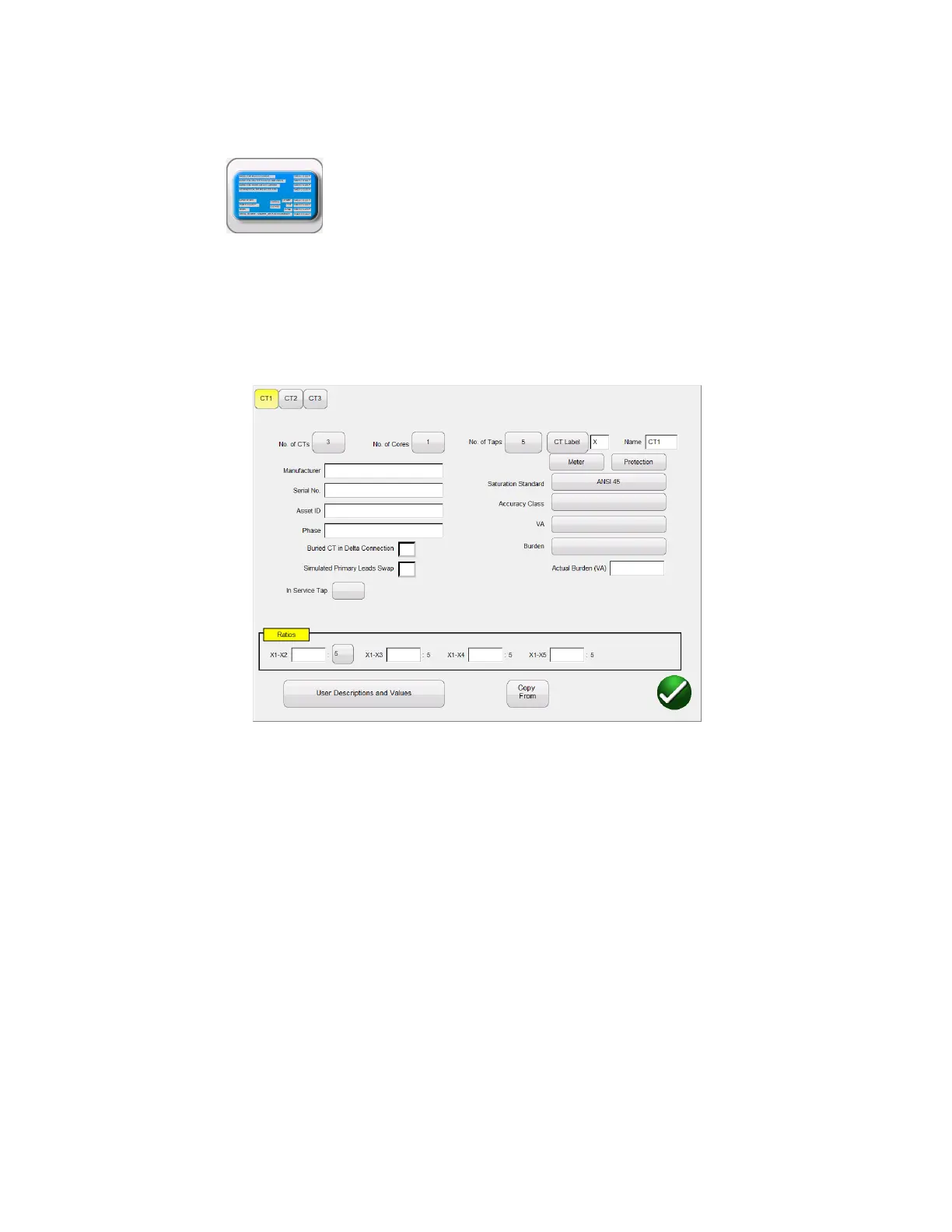 designation at the top of the dialog. The active CT will be high-lighted in yellow and the user can input
