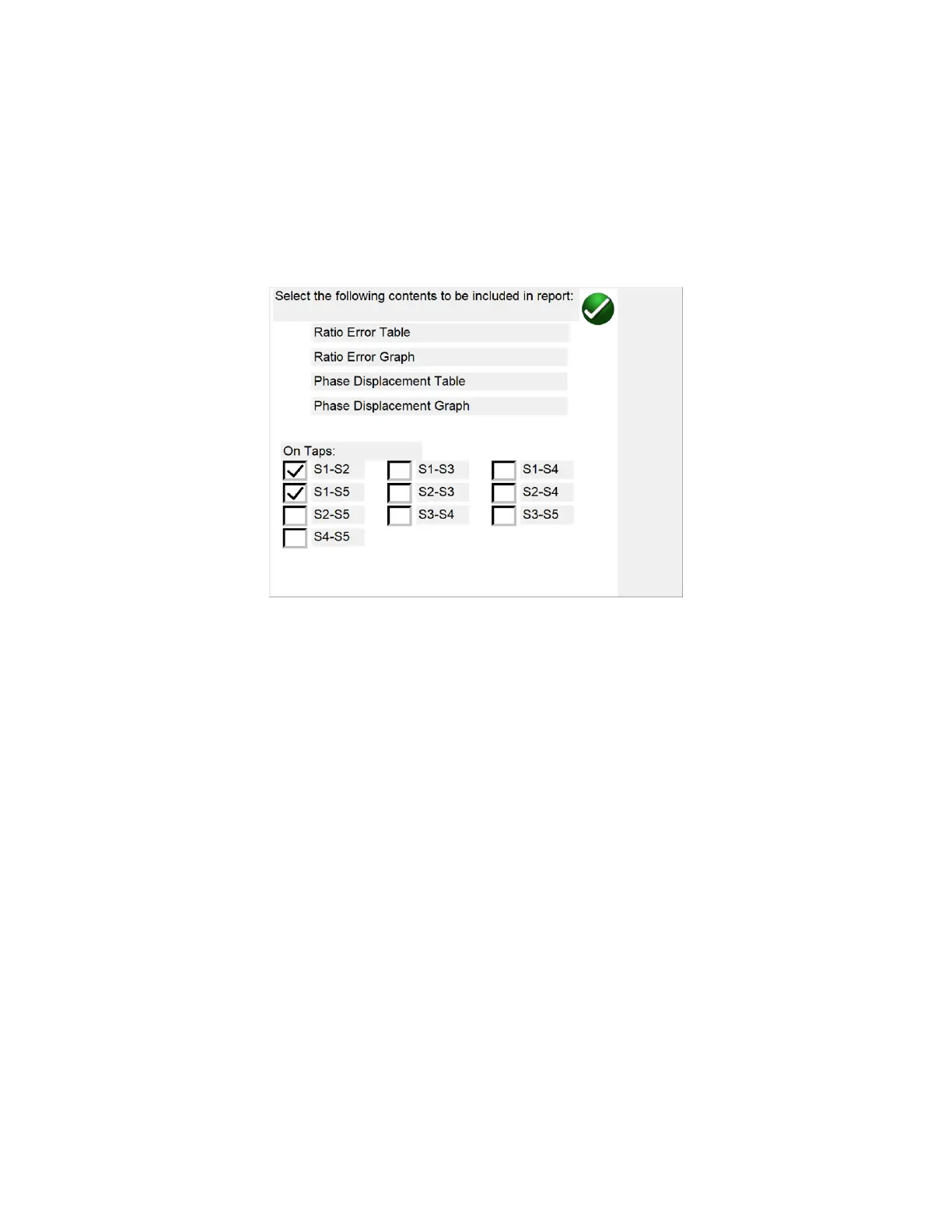 and the CT under test has more than 1 ratio, then the user can specify to include additional taps in the