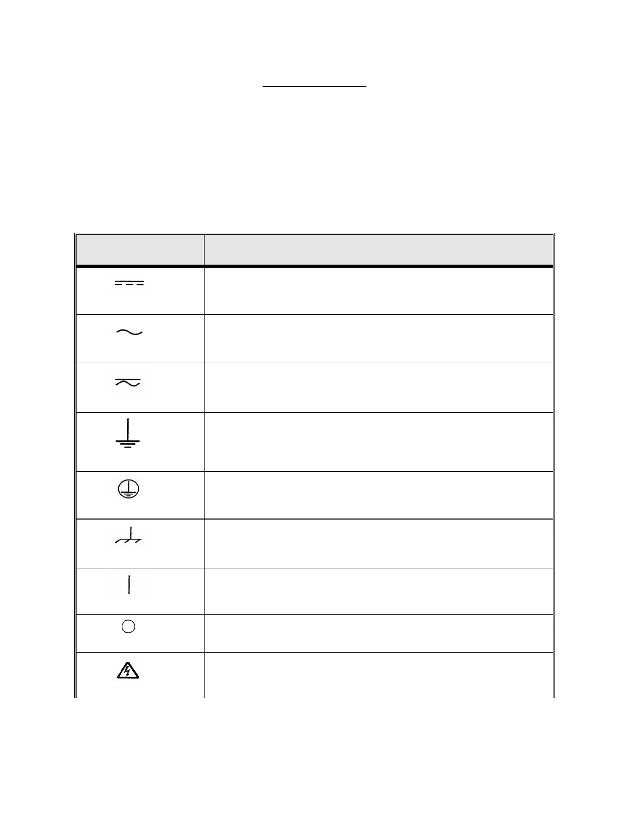 safety related topics. Refer to the following table of symbols and definitions.