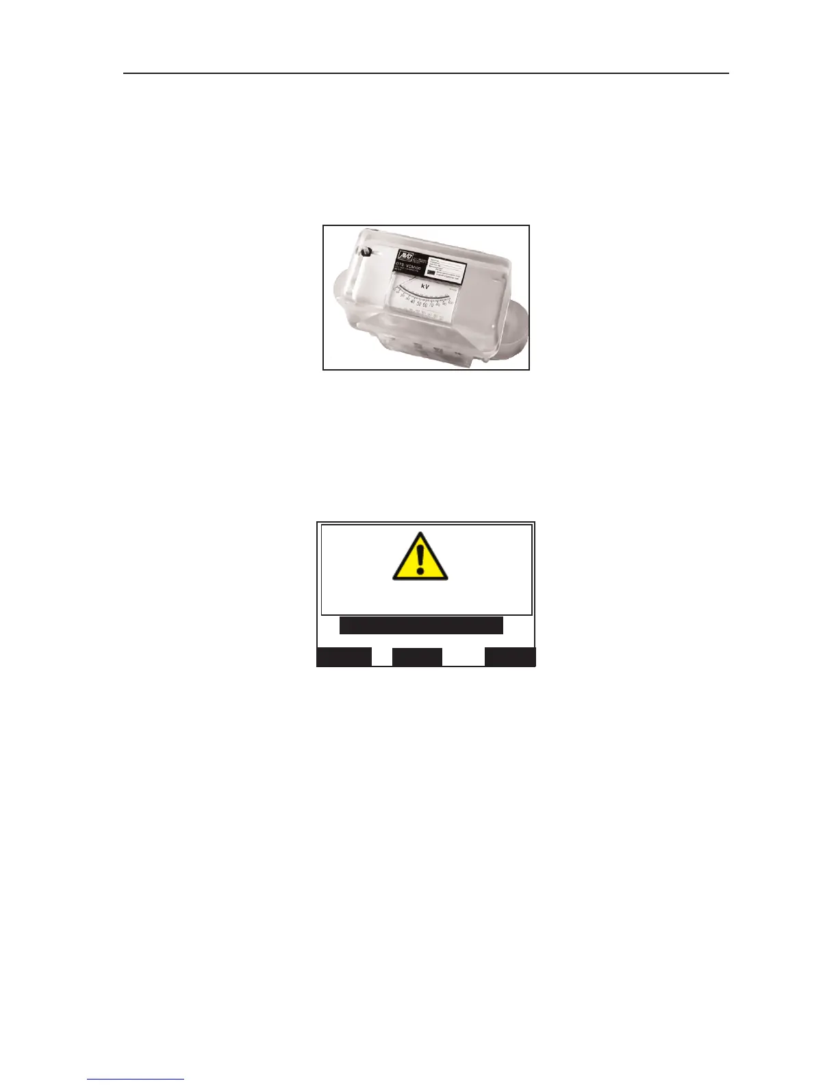 vessel, and voltage indication is viewed on an analogue meter marked from 0 to 100kV in 2kV divisions