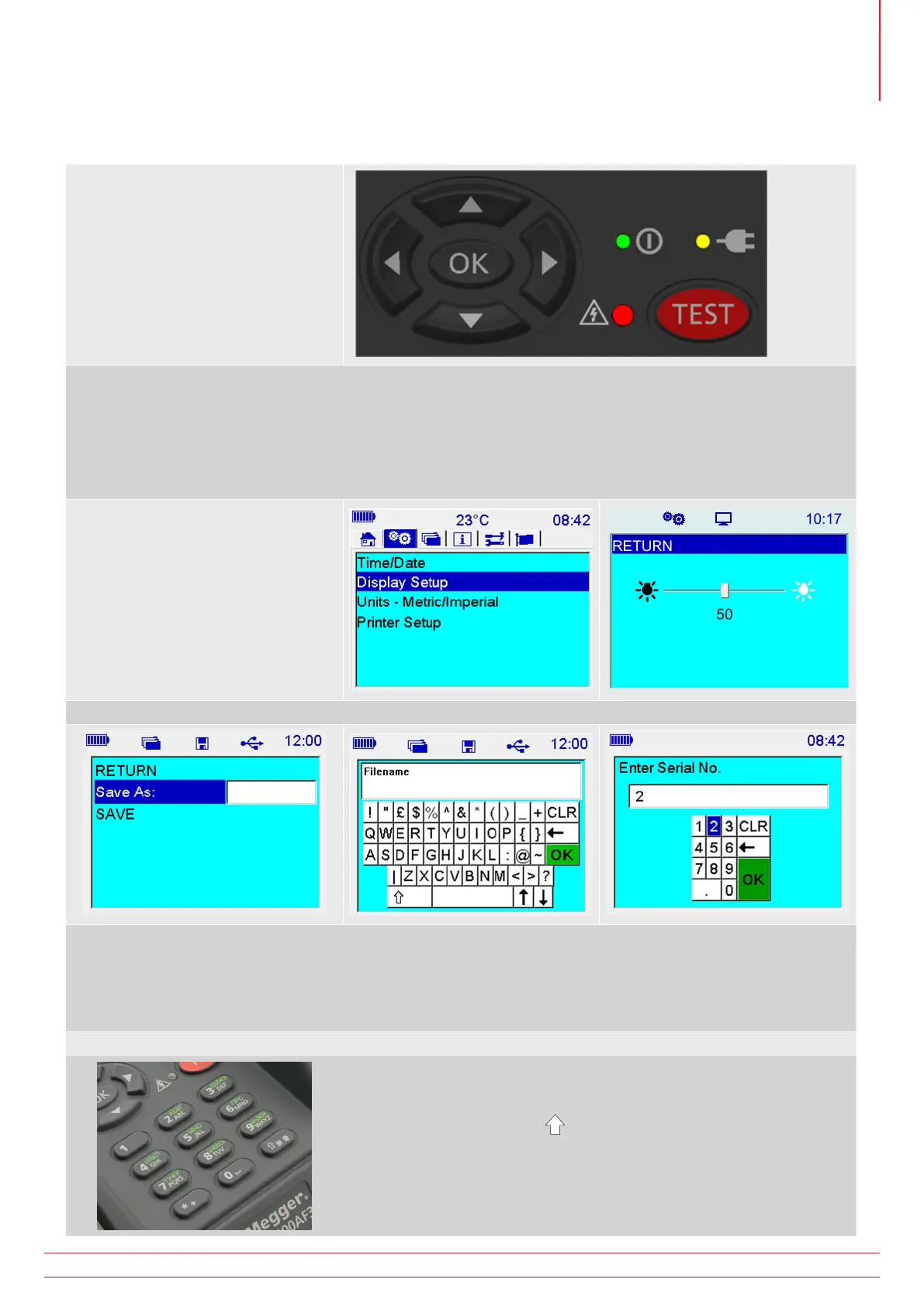 A virtual QUERTY keypad that facilitates alphanumeric entry to specify asset ID, filename and custom test name.