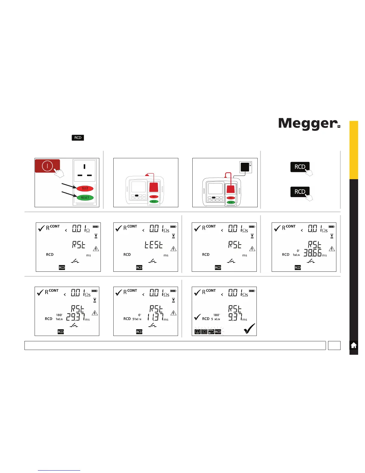 viii) Press RESET on RCD ix) Press RESET on RCD x) Test complete
