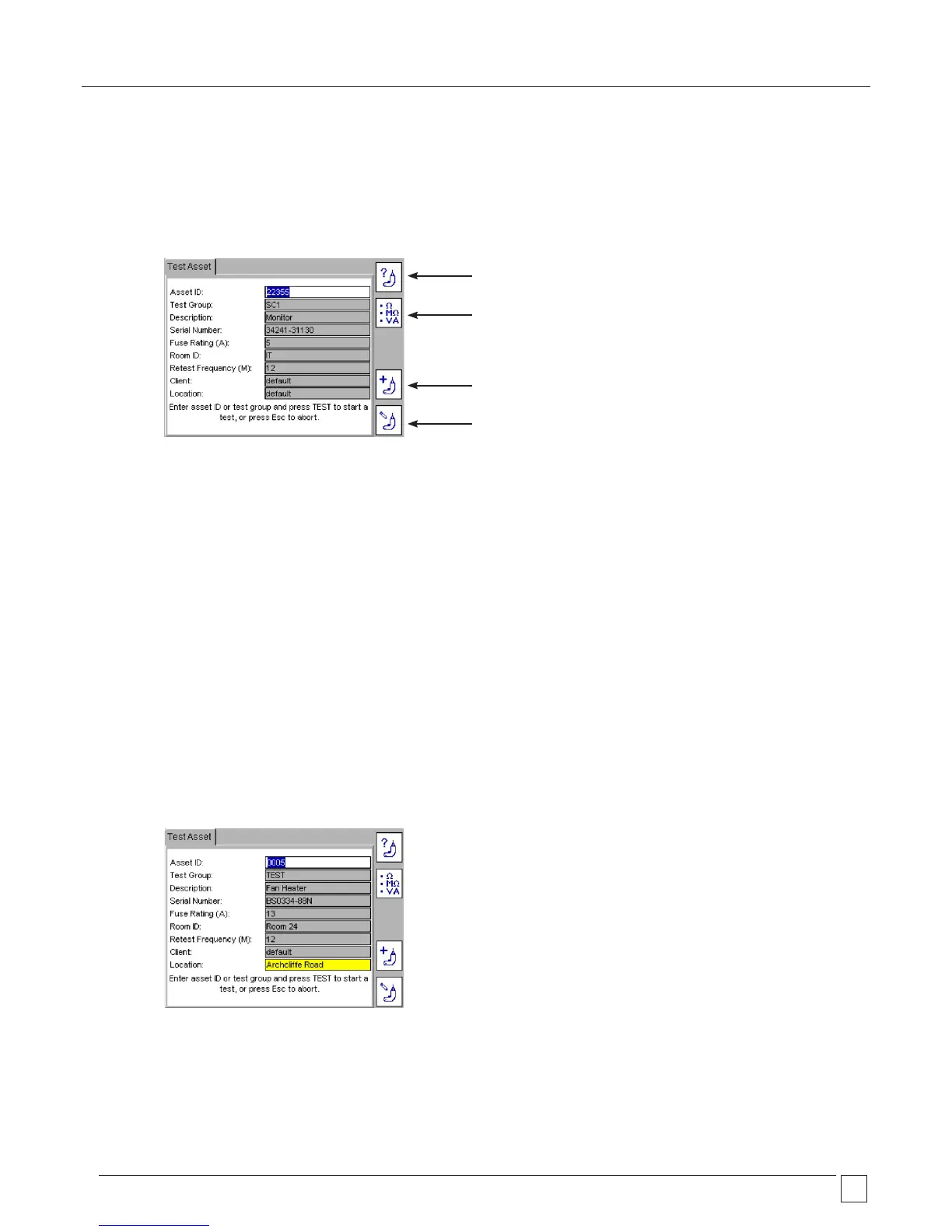 Check the asset information matches the ASSET to be tested. If so, Press TEST and go to section 3.3 TEST PROGRESS.