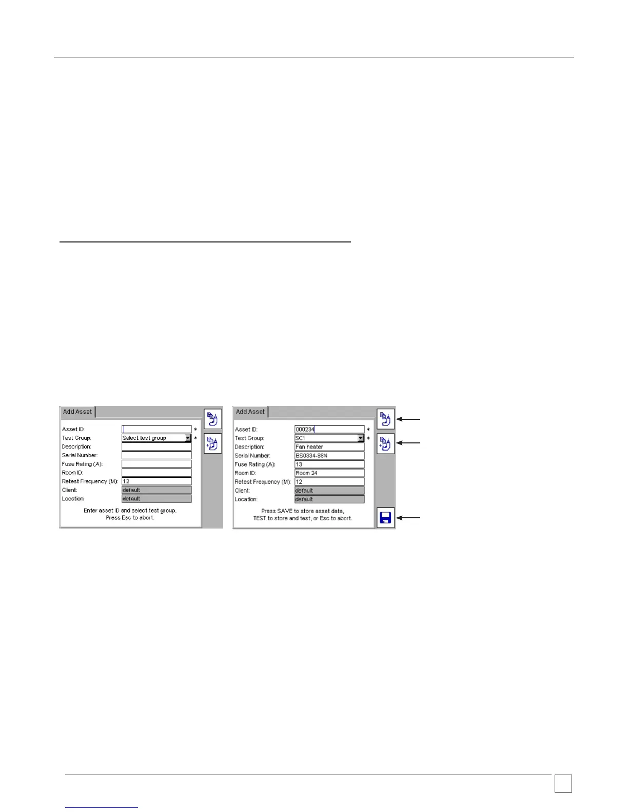 Assets can be saved to memory before or after testing. The add asset screen is shown below: