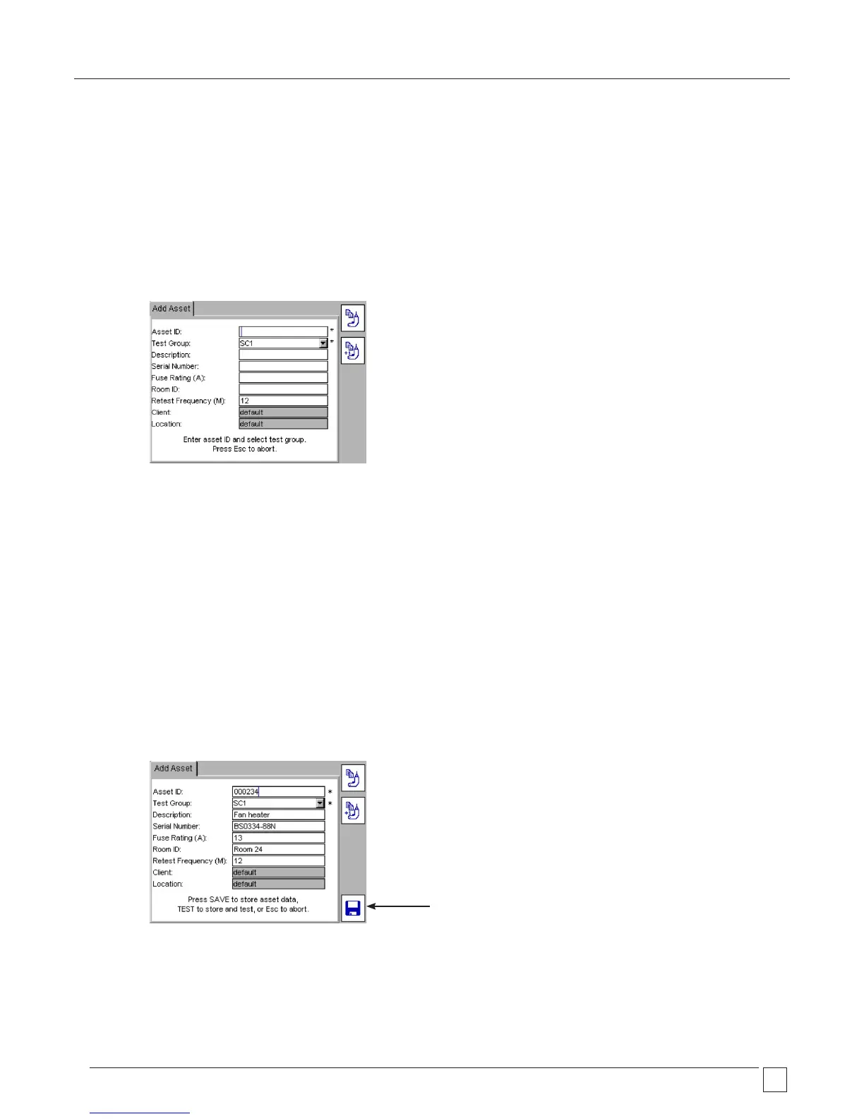 2) If no Asset ID was entered before testing started, the asset screen will be displayed as below.