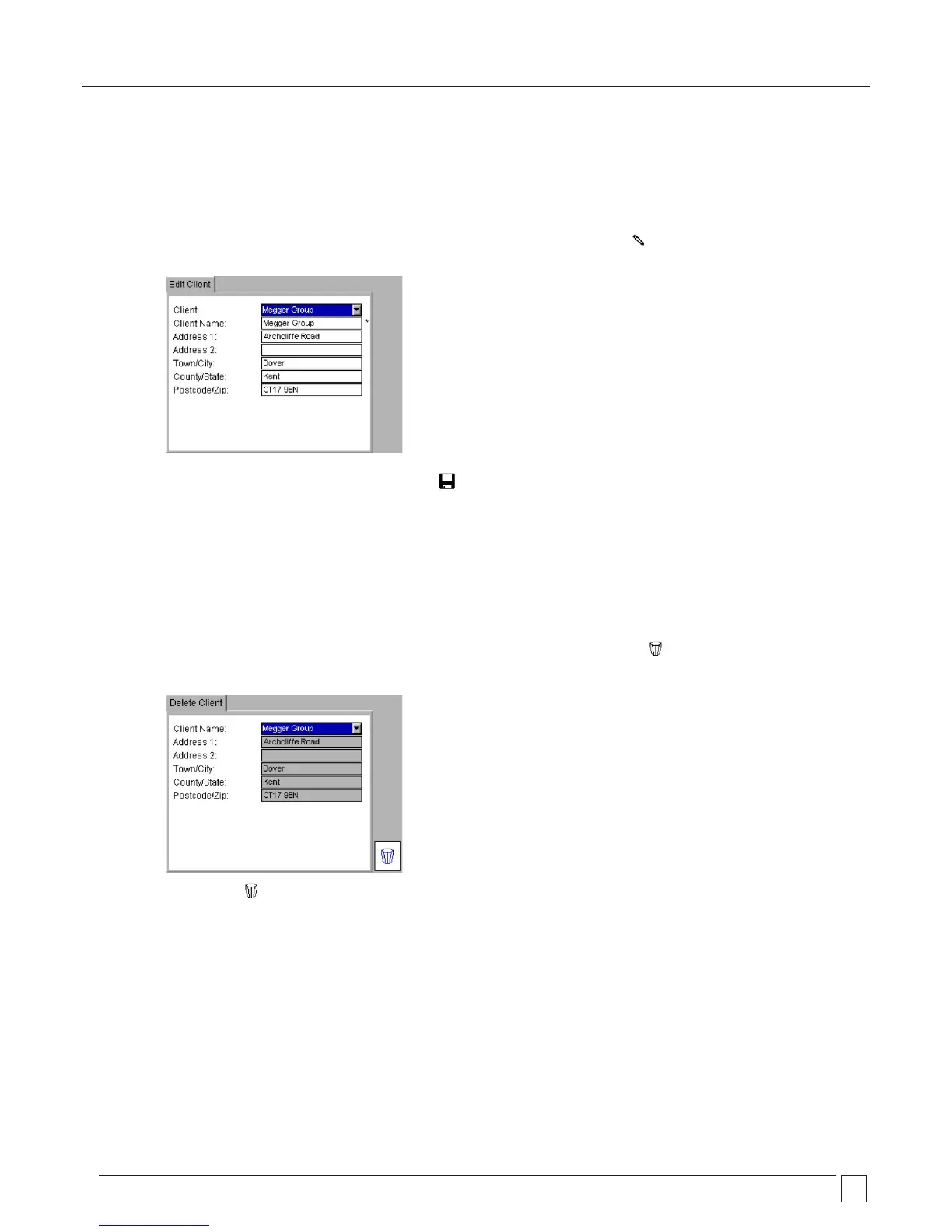 1) Select CLIENT from the SETUP menu and press OK. In the Client screen select the DELETE hotkey.