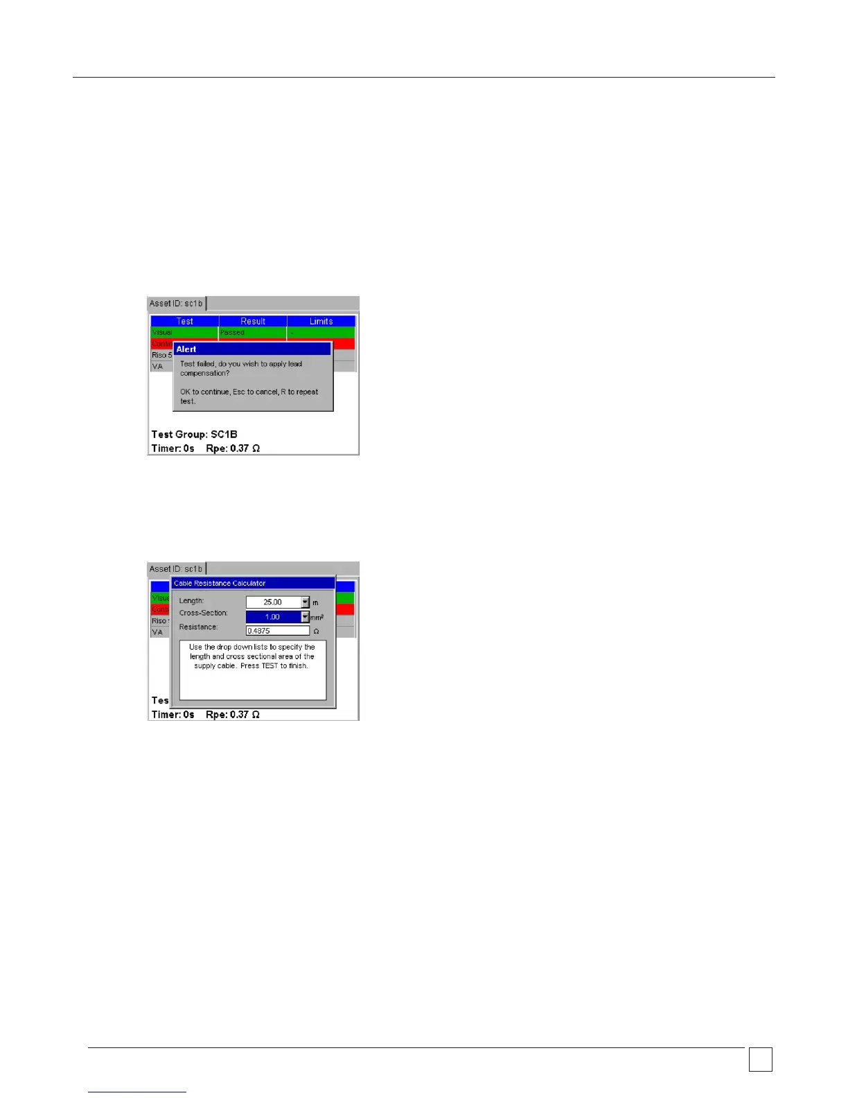 1) When a continuity or Bond test fails, the screen message alert will be displayed: