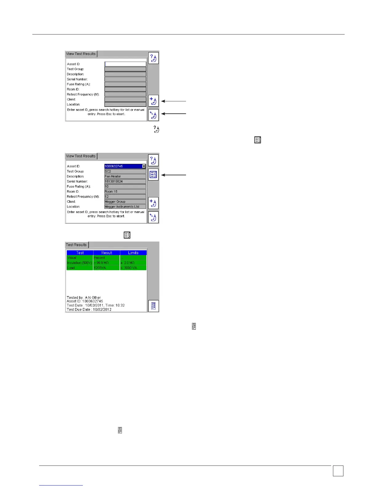4) When the desired Asset ID has been found, Press OK to accept. The VIEW TEST RESULTS Hotkey will appear as below.
