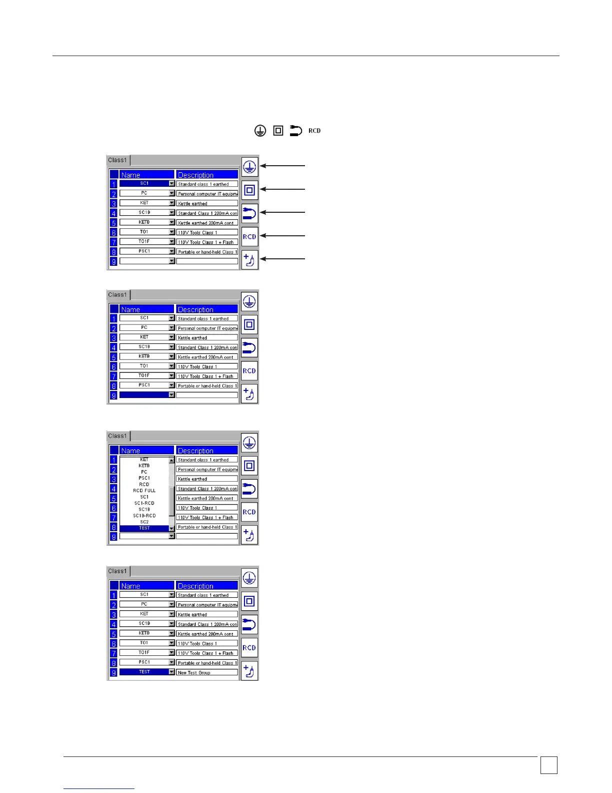 NOTE: The TEST GROUPS can be freely allocated to any of the nine fields and in any of the four Hotkeys. If desired a CLASS I TEST