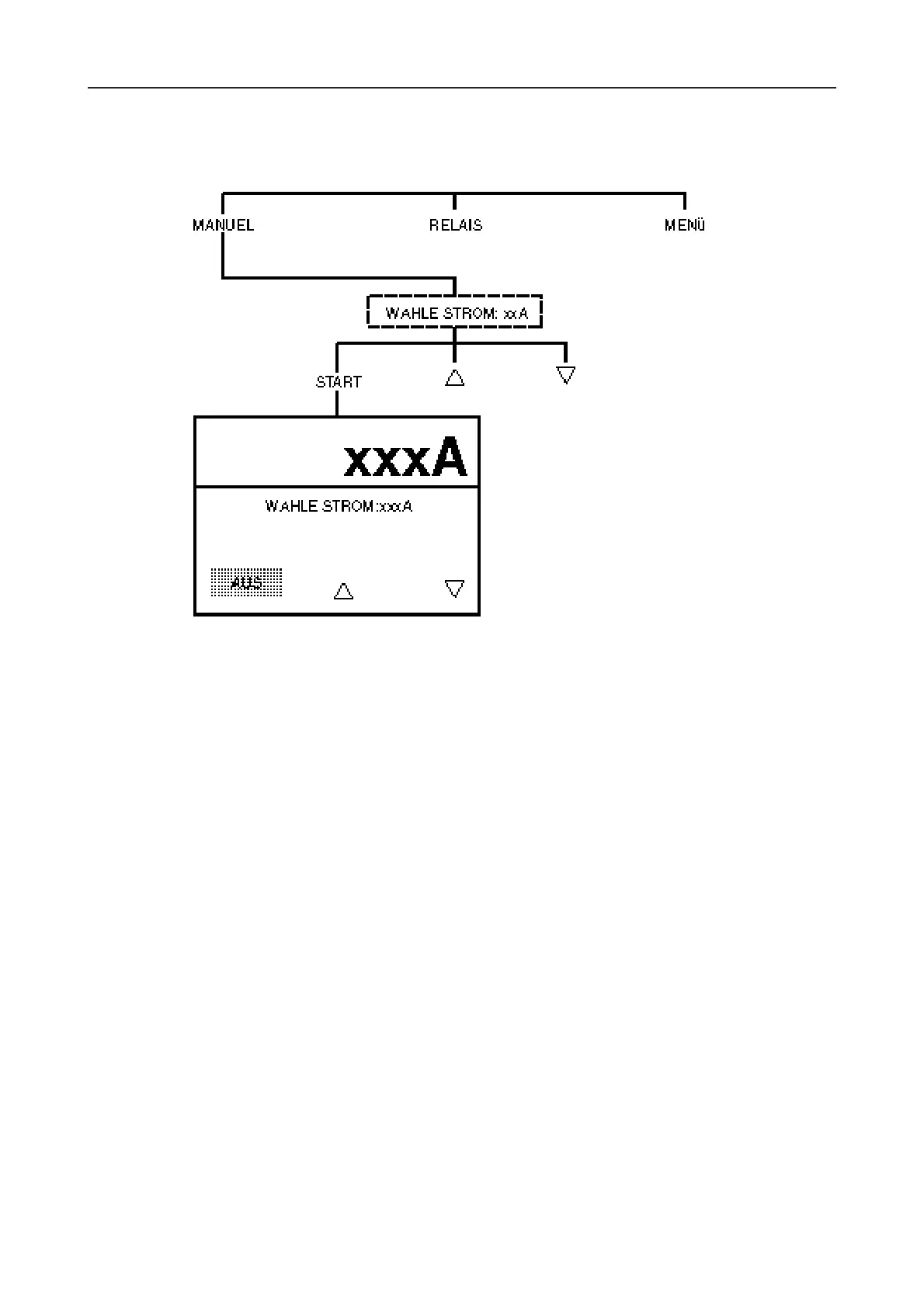 STROM" auf "MANUEL". Der gewünschte Prüfstrom wird über die