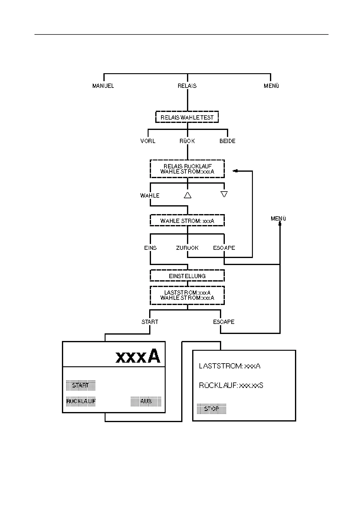 Wählen Sie im "STROM"-Prüfoptionsbildschirm "RELAIS" und anschließend "RÜCKLAUF".