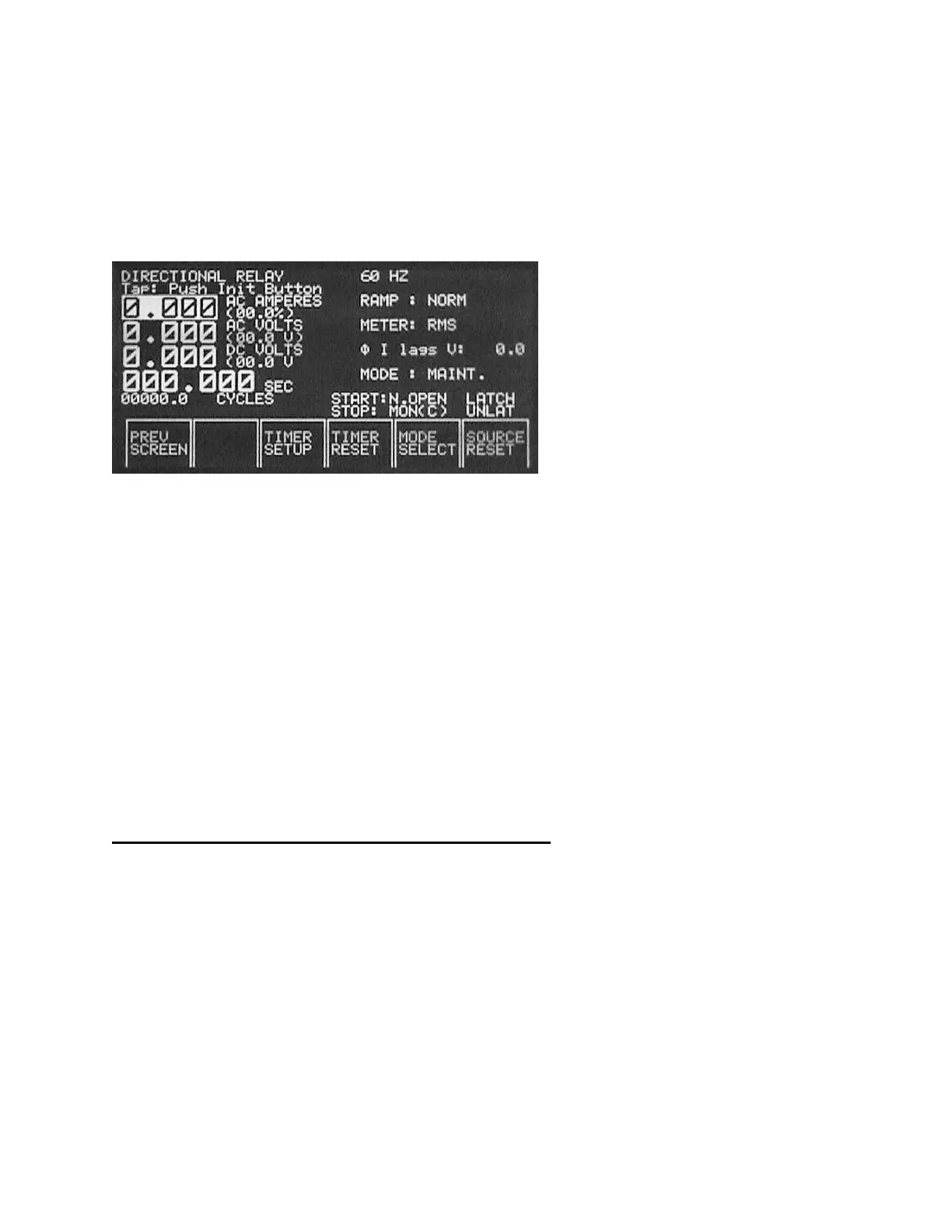 The DIRECTIONAL RELAY Test Screen is used to test all single-phase directional
