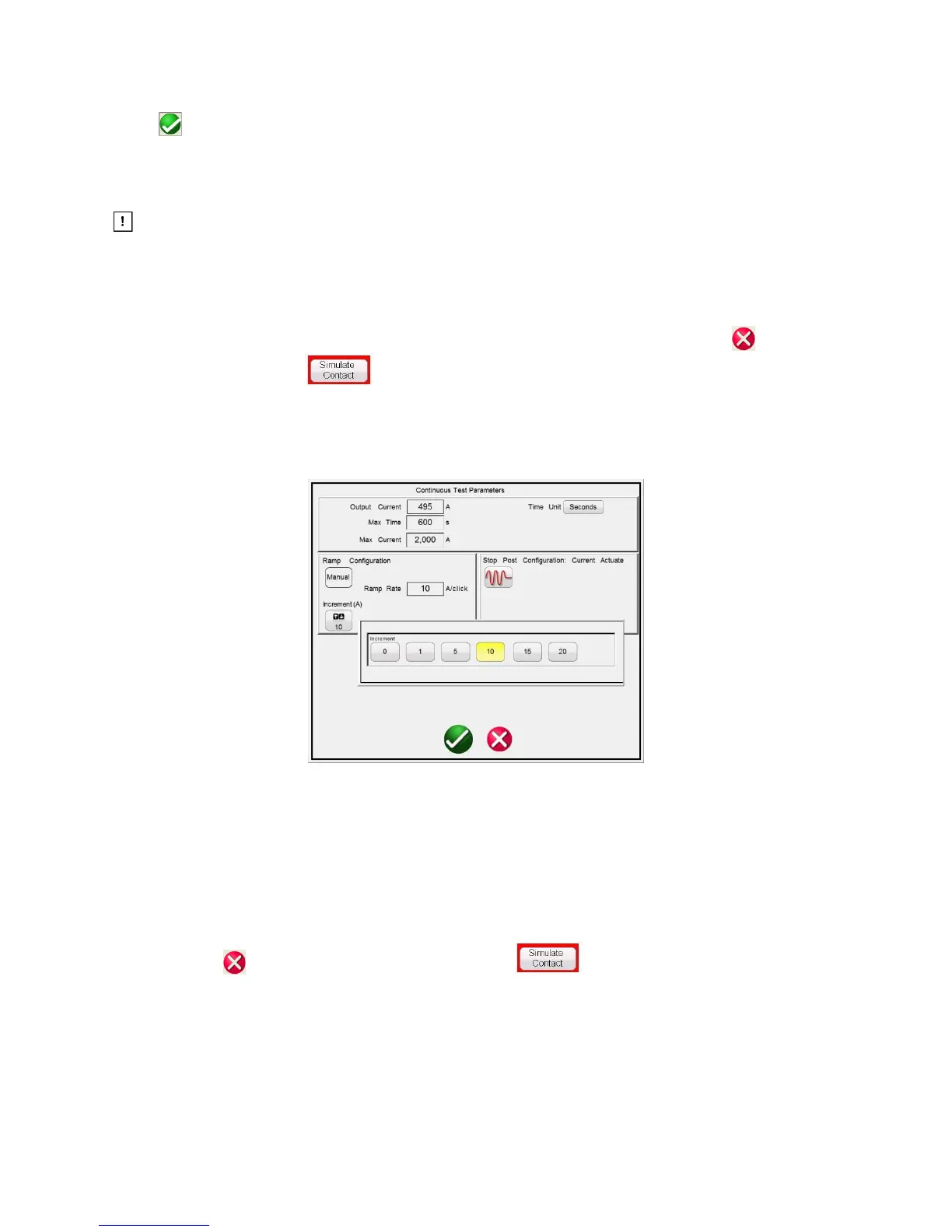 the output current press the Increment button and set the increment value. Once the test has started,